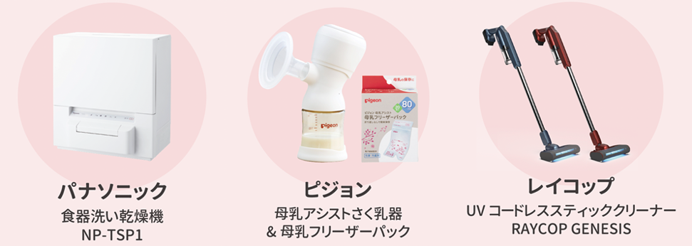 ■食洗器やコードレスクリーナー、電動さく乳器など豪華プレゼントも!