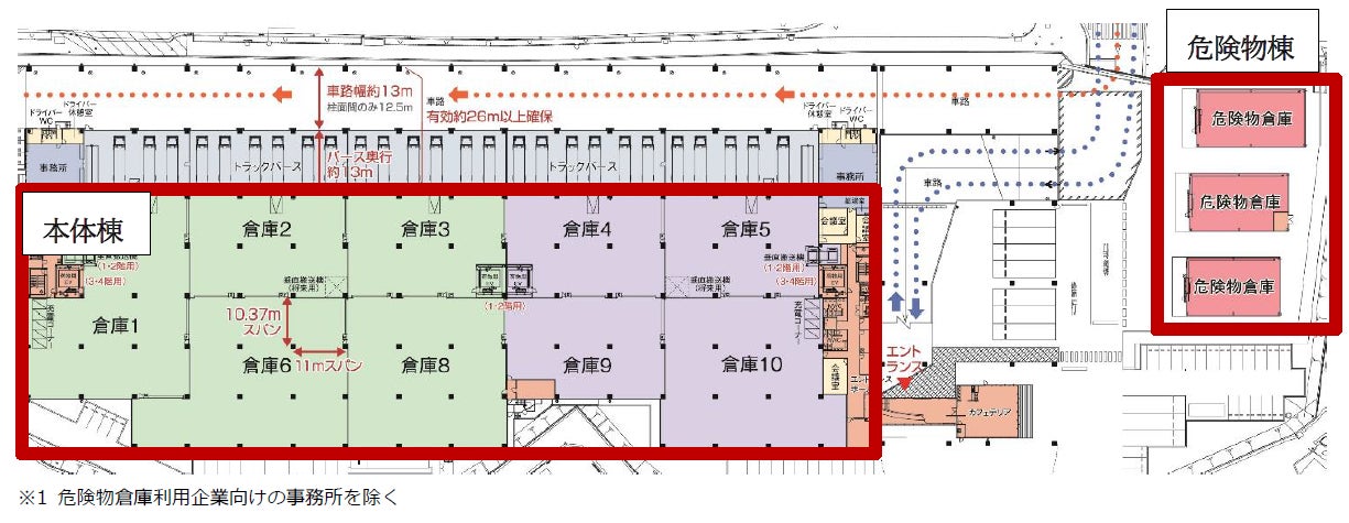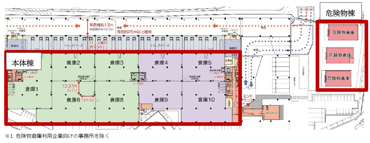 新型コロナウイルス感染症の感染拡大に伴いEC需要が大幅に増加するなか、物流施設の需要の増大や入居企業のニーズも多様化してまいりました。これらの事業環境変化に対応するべくLandport上尾Ⅰ本体棟は、高積み保管可能な梁下有効高6.5mを確保し保管型のニーズに対応、Landport新座は、冷蔵・冷凍・常温の3温度帯に対応可能な施設設計とし、両物件ともEC関連の荷物を取扱う物流施設として稼働を予定しております。尚、今回の2物件の竣工で、同シリーズは合計24棟となりました。