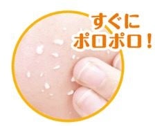 お肌の上でやさしくマッサージするだけで、古い角質がポロポロオフ。瞬時につるすべ肌を実現!
