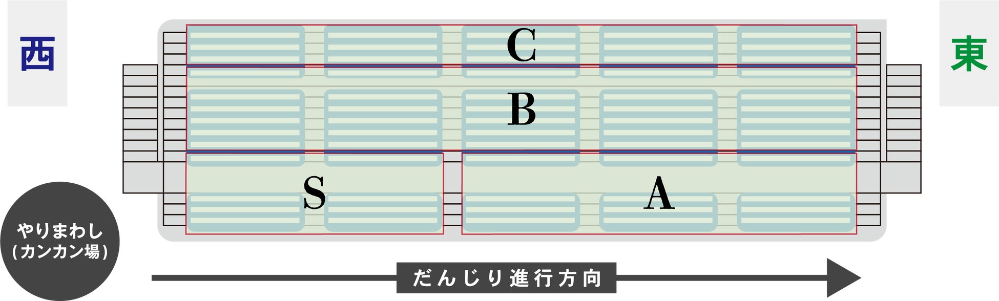 9月12日(金)から14日(日)までの3日間(試験曳き、宵宮、本宮)、「カンカン場」に面する山側(コープ岸和田店駐車場)と海側(カンカンベイサイドモール)の2会場にて、特設ビューイングシート(観覧席)を設置します。本番前日ならではの緊張感を間近で味わえる「試験曳き」、本番当日にだんじりが各町に繰り出す決定的な瞬間が観られる「曳き出し」、全だんじりが一挙に集結する「パレード」、そして祭りの盛り上がりが増す「午後」の時間帯まで、バリエーション豊かな席種をご用意します!山側には、より近くで観覧可能なS席を新設するほか、今年も一部時間帯をA・B・Cの3つのエリアに分けて販売し、海側にはソファーVIP席を設置します。さらに今年は、ご家族やグループでのご利用にお得な「団体割引チケット」も新たに導入します。毎年大混雑必至の岸和田だんじり祭を、特別観覧席でゆったりとお楽しみください。