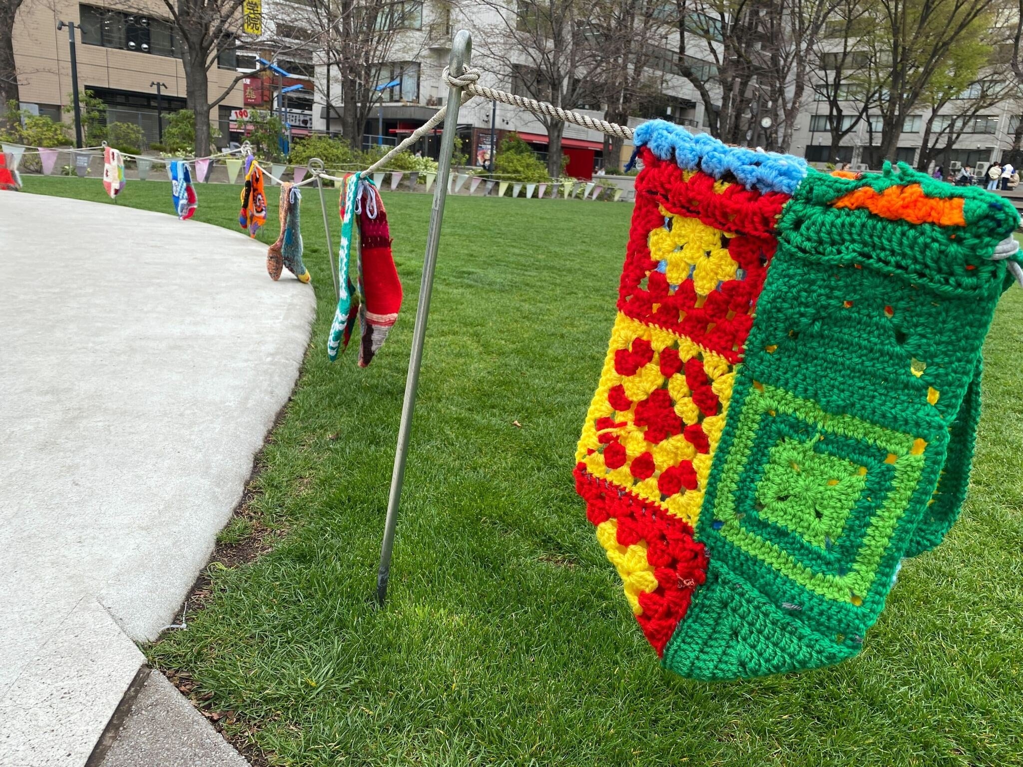 昨年の「としま編んでつなぐまちアート」開催後、公園を彩るガーランドやラグが寄贈されました