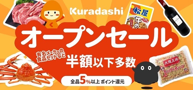 また、フードロス削減に貢献する「Kuradashi au PAY マーケット店」では、消費者庁などが定めた10月の「食品ロス削減月間」に合わせ、賞味期限が近いなどの理由でまだ美味しく食べられるにも関わらず、廃棄の危機にある商品等を驚きの価格でご提供します。全商品対象で5%以上のポイント還元や幅広いラインナップが日替わりで登場する目玉商品の割引セールを開催します。そのほかau PAY マーケット限定のコラボ商品が50%割引以上でお求めいただけるなど、店内の全商品がおトクにお買い求めいただけます。さらに、Pontaパス会員限定クーポンやすべてのお客さまが使えるクーポンの配布でおトクにお買い物をお楽しみいただけます。