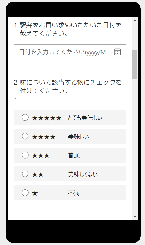 召し上がっていただいた駅弁の感想を5段階の星の数で評価してください。