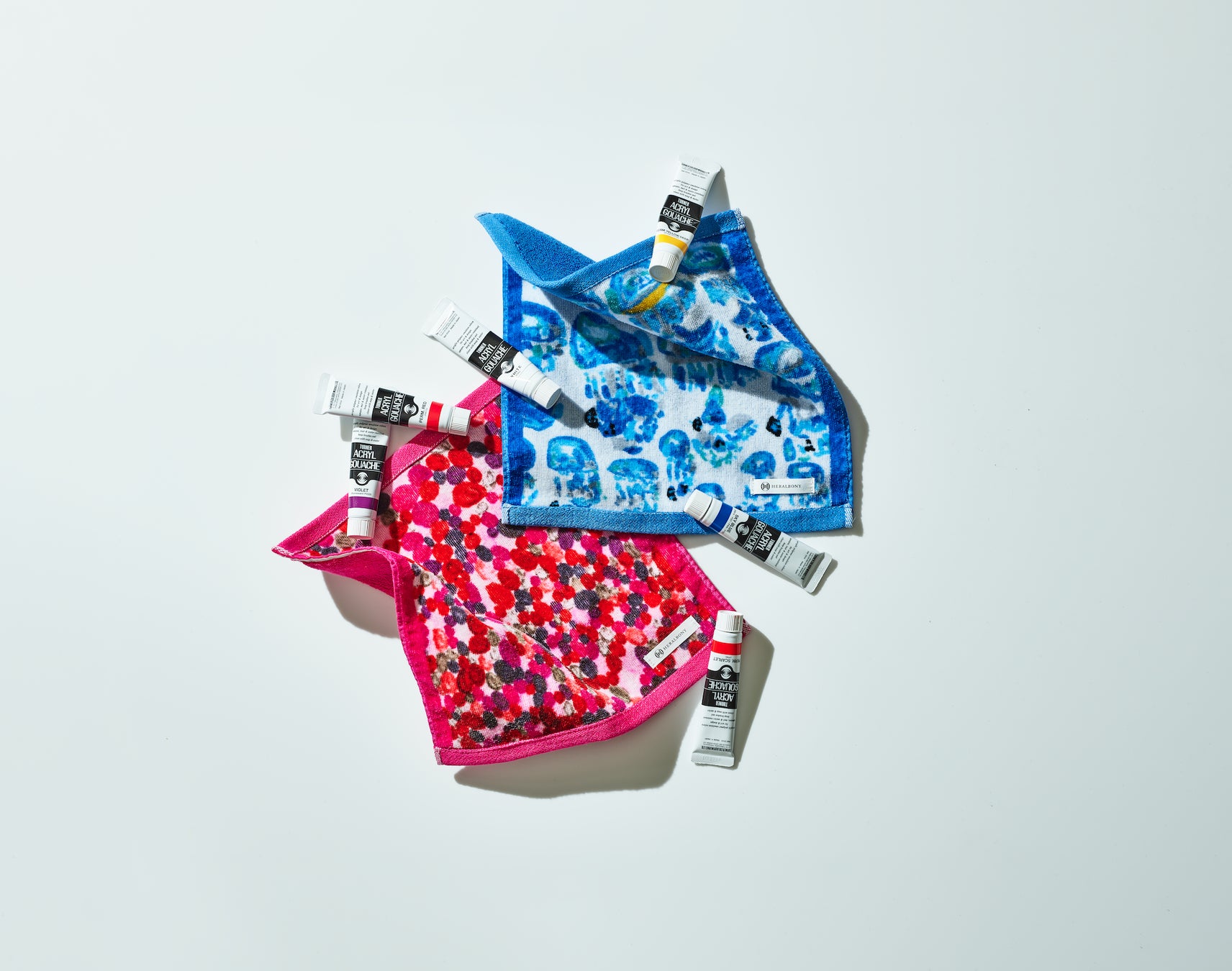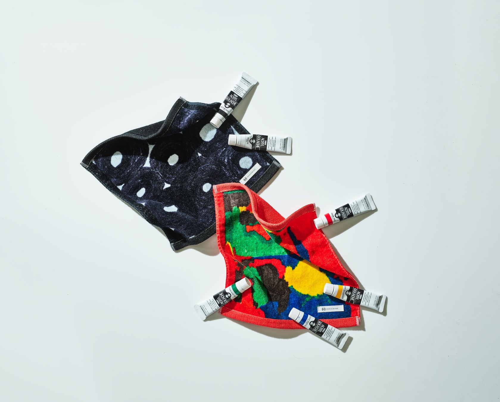 新作タオルハンカチは全5種、アート塗り絵付きメッセージカードを全員プレゼント