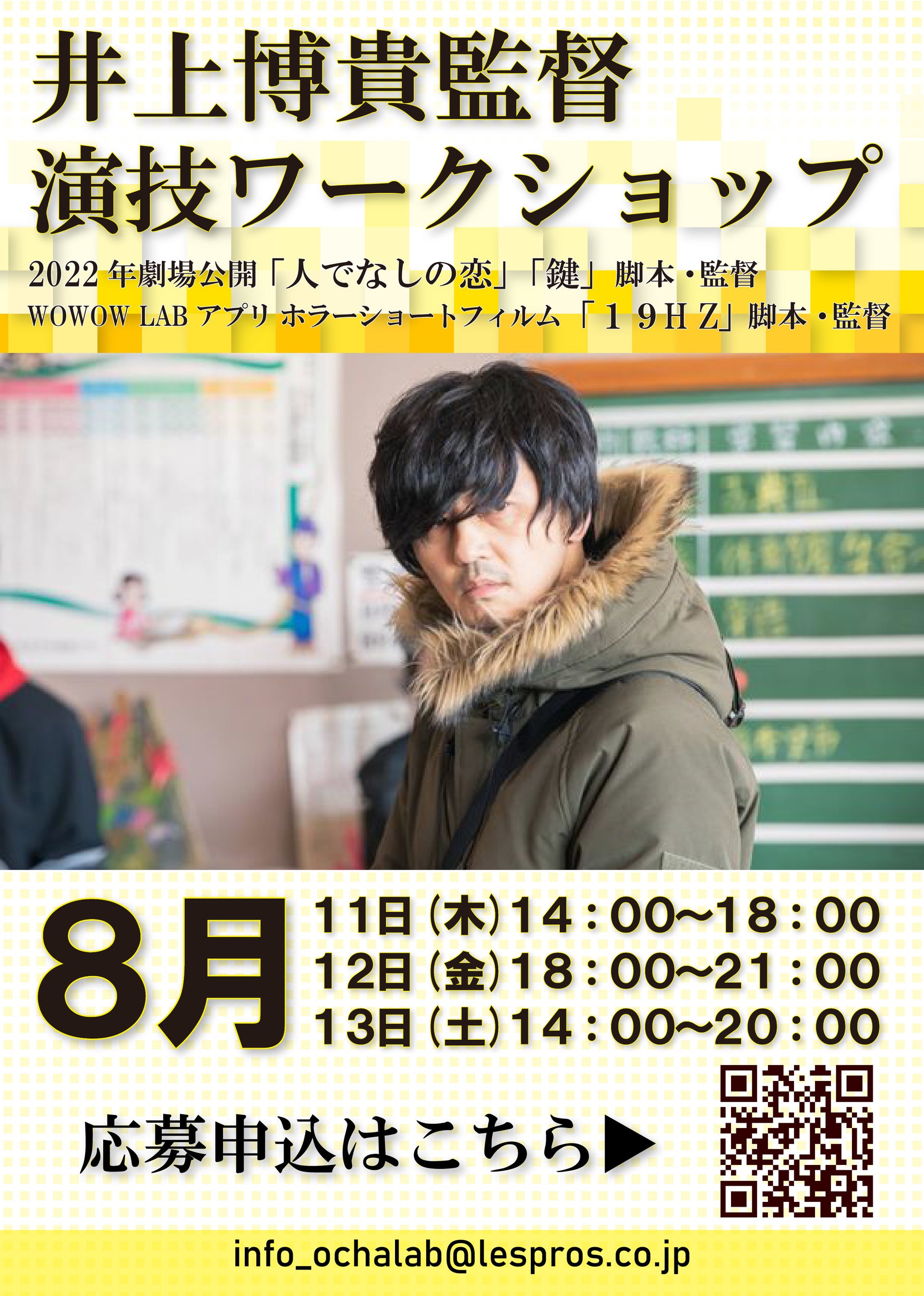 『鍵』『人でなしの恋』『新卒ポモドーロ』脚本・監督<映像出演 実践の3日間>井上博貴監督演技ワークショップ開催!