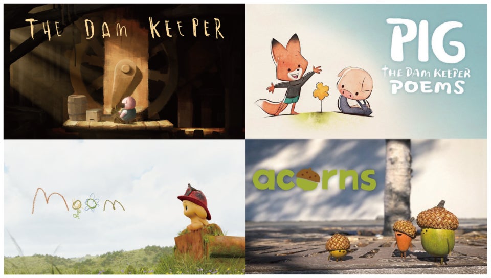 会場ではトンコハウスの作品も上映します。『ダム・キーパー』(2015年・18分)、『ムーム』(2016年・13分)、『ピッグ 丘の上のダム・キーパー』(2017年・全10話 計50分)の3作品は、会場内の上映コーナーで、『Acorns(エイコーンズ)』(2020年・全10話)は展示エリアにてフルバージョンをご覧いただけます。登場するキャラクターは愛らしく、短編とは思えないような余韻がのこる作品ばかりです。どうぞゆっくりご鑑賞ください。