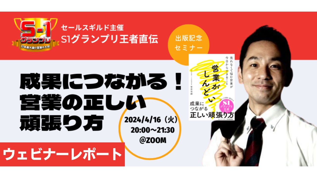 営業日本一の "S1グランプリ王者" が教える「成果につながる正しい頑張り方」とは。書籍「営業がしんどい」出版記念セミナーを開催しました!《4/16(火)ウェビナーレポート》