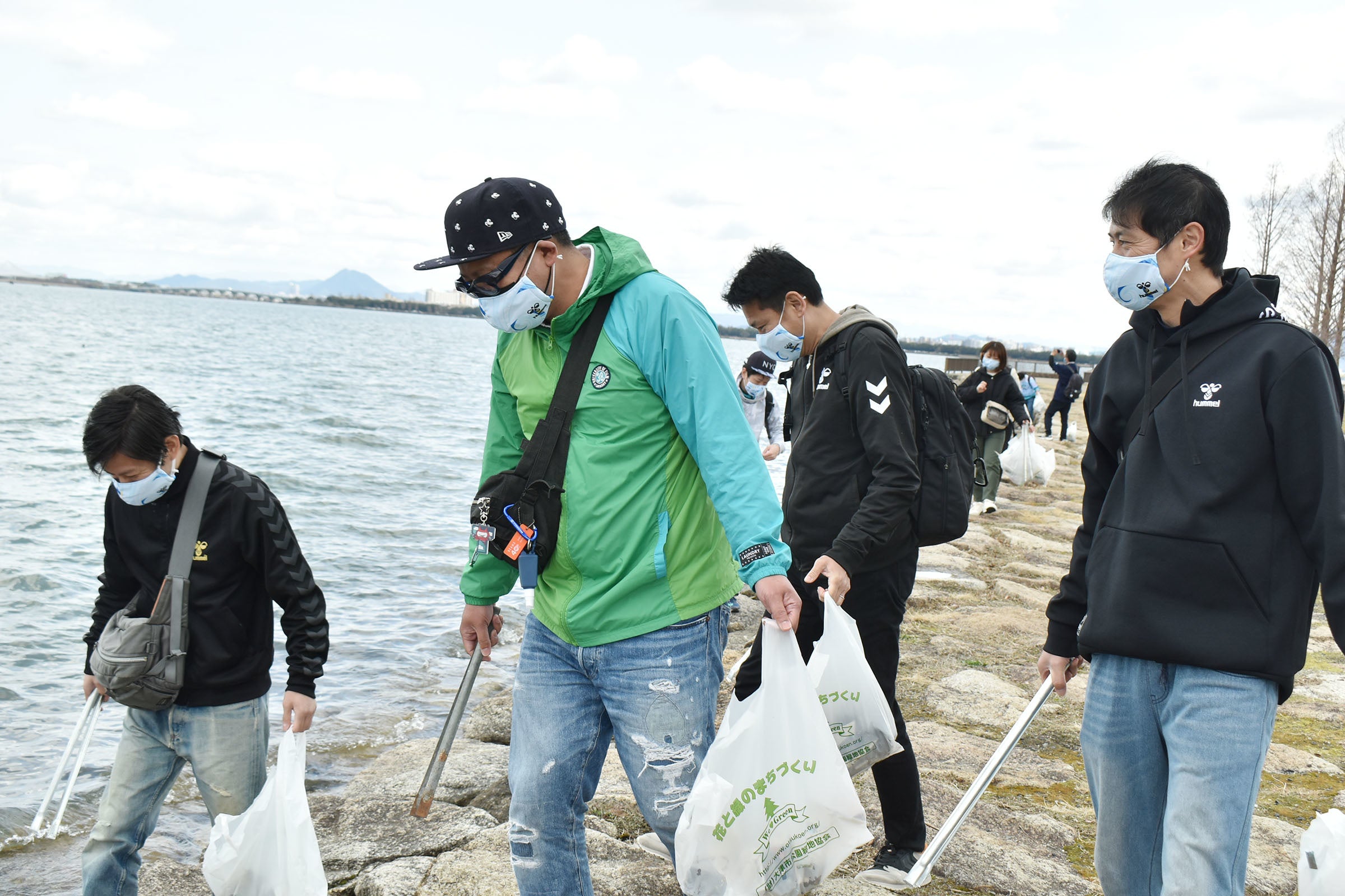 1回目は、昨年11月に、両クラブのスタッフやチア、ブースターなど約70名で鴨川を清掃。2回目は今年3月、約80名が参加し、びわ湖で行いました。マスコットやチアとの交流を楽しみながら、ゴミ拾いを行ってもらいました。