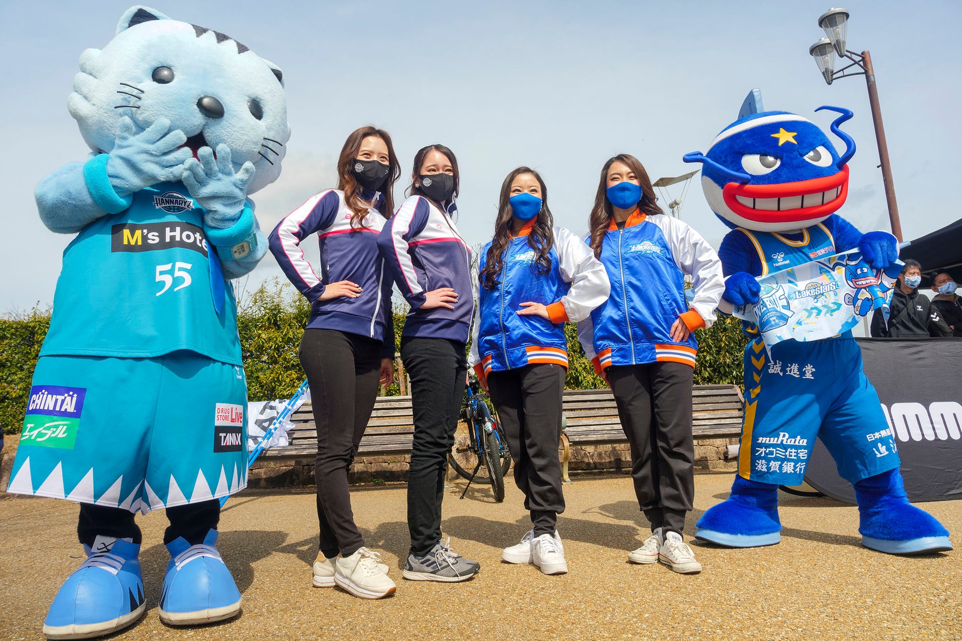 参加:京都ハンナリーズ 久保田義章選手、はんなりん KURUMI、滋賀レイクスターズ 柏倉哲平選手、レイクスチアリーダーズ RUMI