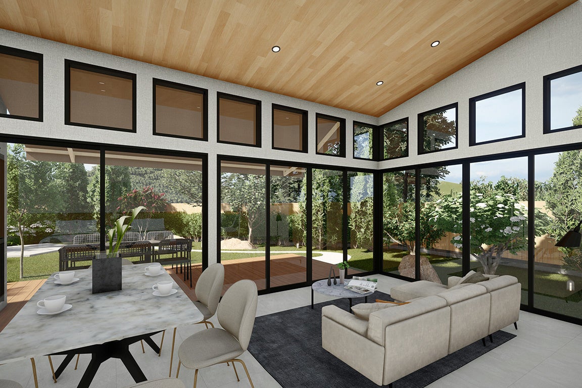 三重県伊勢市のプライベート露天風呂付きラグジュアリートレーラー。お部屋の中はモダンな小上がりが付いており、屋外には信楽焼の陶器の露天風呂と大型犬でも十分走り回ることのできる広さのドッグランも付いています。