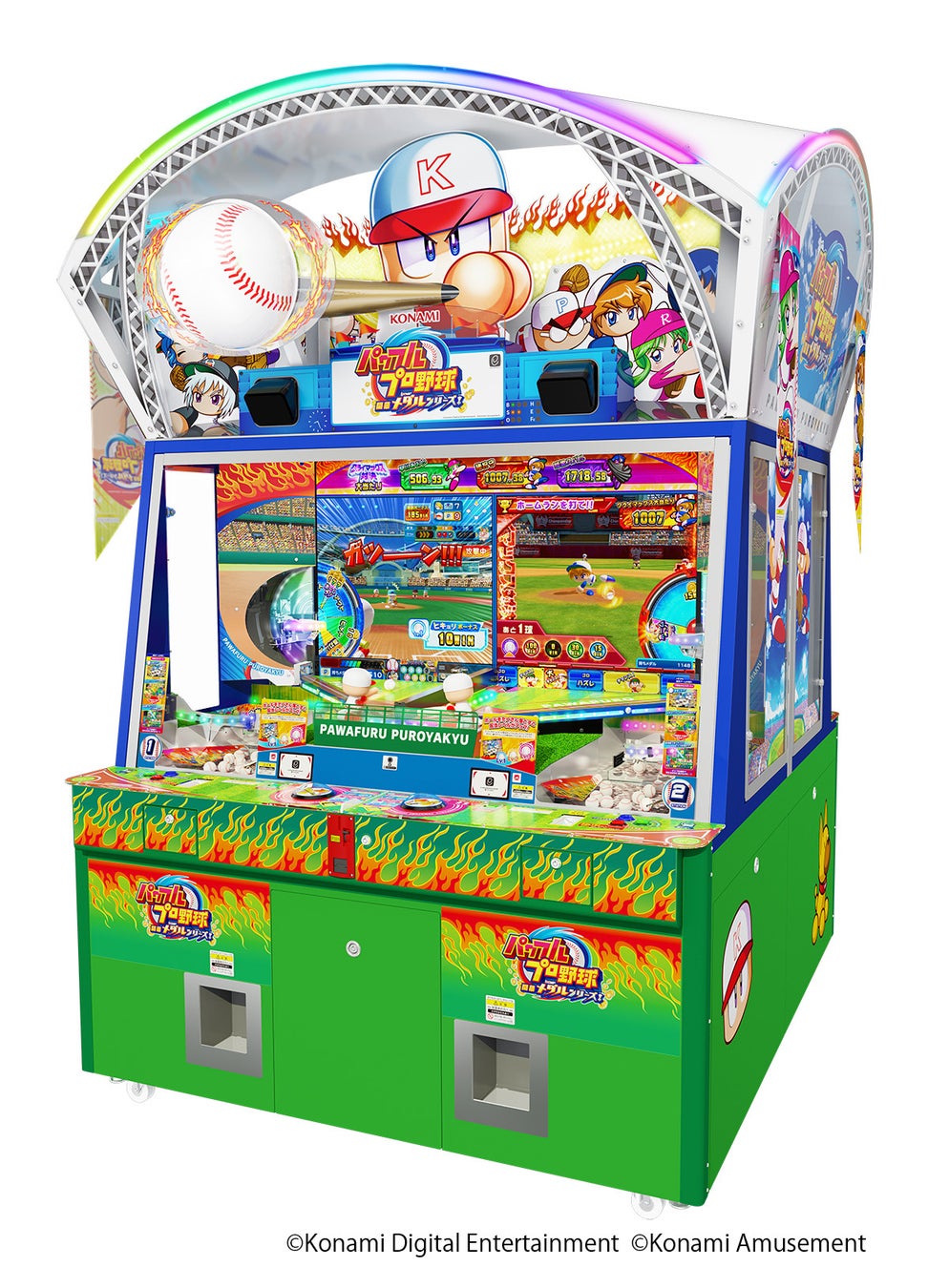 メダルゲームの定番である「プッシャーゲーム」をプレーしながら、「パワフルプロ野球」のキャラクター達と試合を行い勝利を目指す、メダルゲームと野球ゲームの両方の楽しさを味わえるメダルプッシャーゲームです。