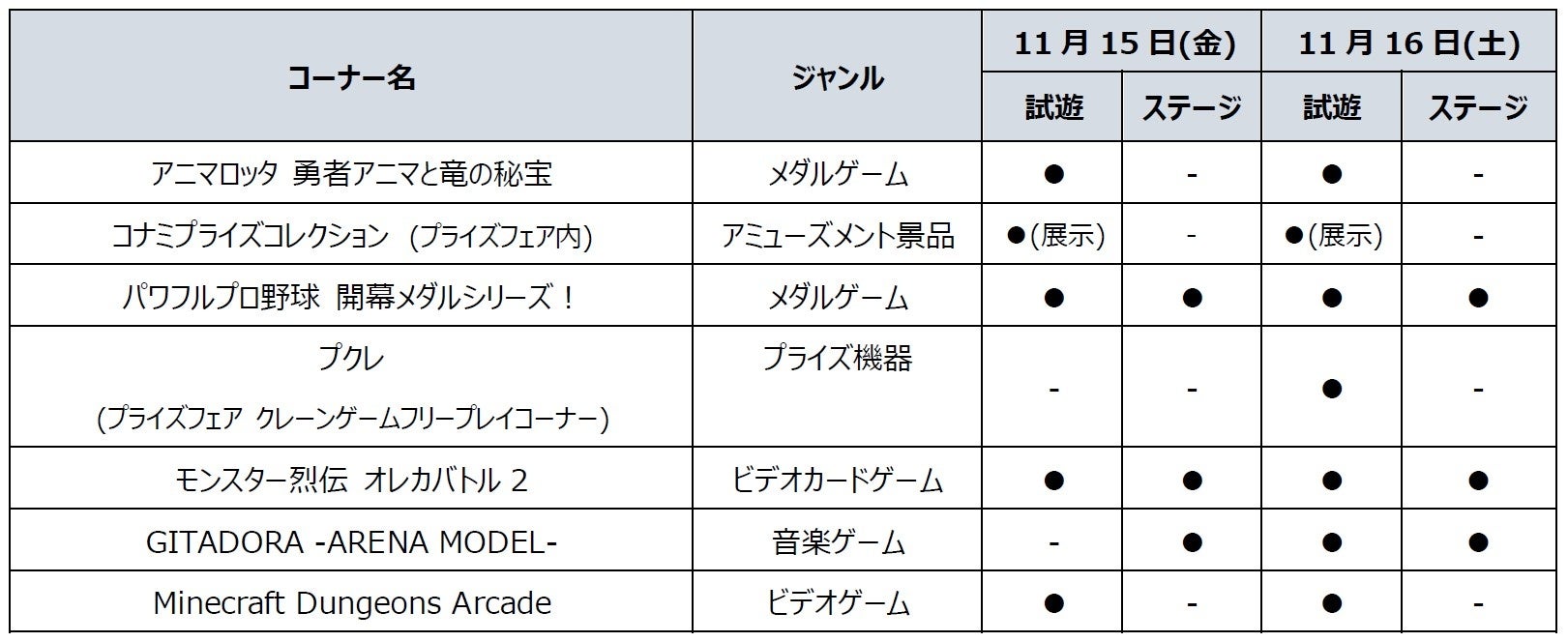 新たにアミューズメント施設向け音楽ゲーム「GITADORA」の新筐体『GITADORA -ARENA MODEL- (ギタドラ アリーナ モデル)』や、ビデオゲーム『Minecraft Dungeons Arcade(マインクラフト ダンジョンズ アーケード)』の出展など、各コーナーでお楽しみいただける情報を更新しました。