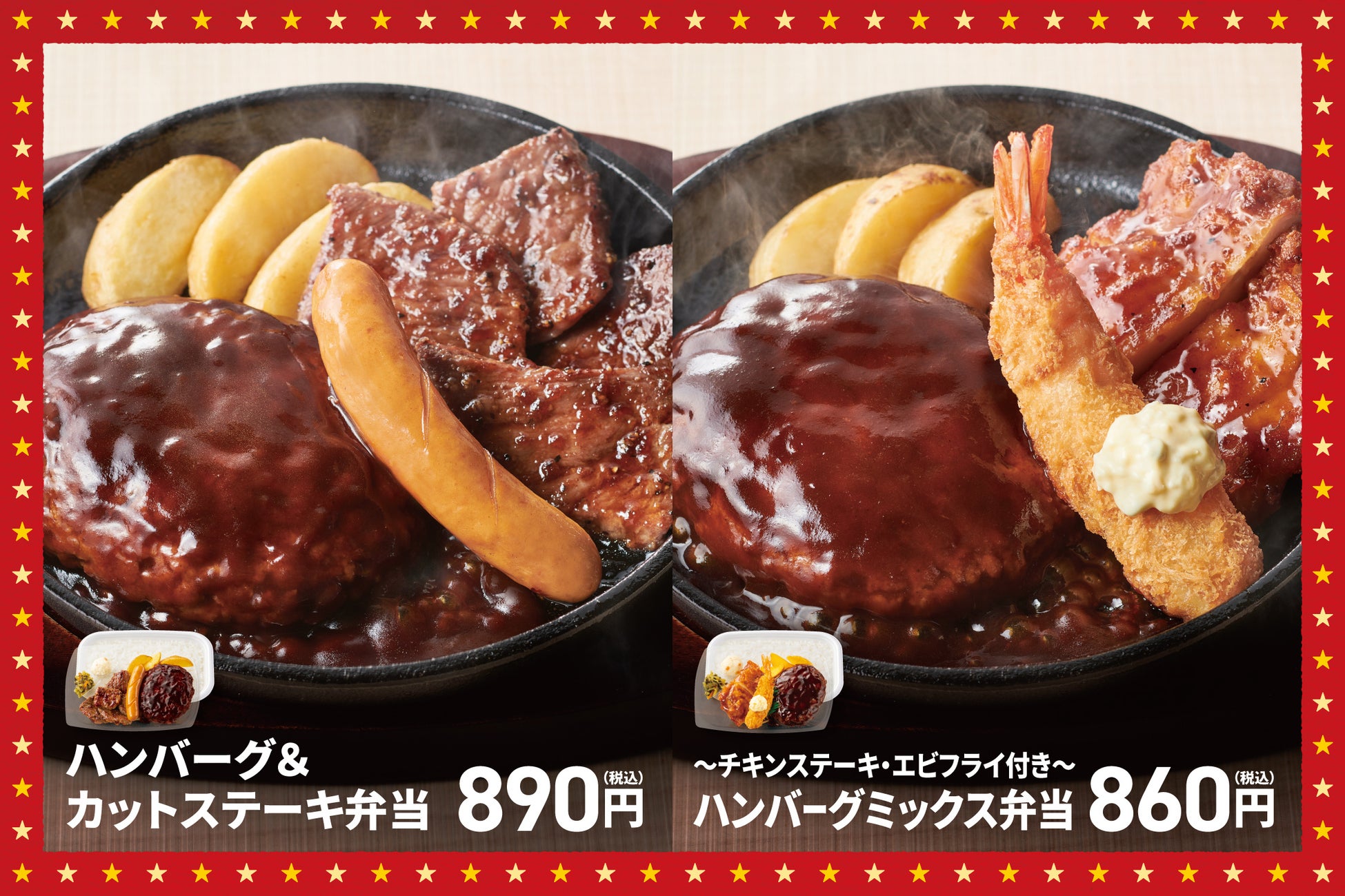 「ほっともっと」ゴールデンウィークはちょっと贅沢に! 人気おかずの豪華なハンバーグ2商品 『ハンバーグ&カットステーキ弁当』『~チキンステーキ・エビフライ付き~ハンバーグミックス弁当』