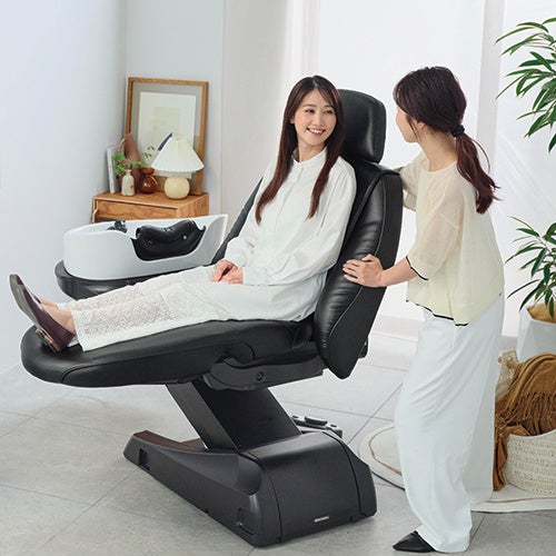 90度回転させたシートはそのままフルフラットまで倒れ、ヘッドスパだけでなくフェイシャルをはじめとした幅広い美と癒しのメニュー提供を可能に。