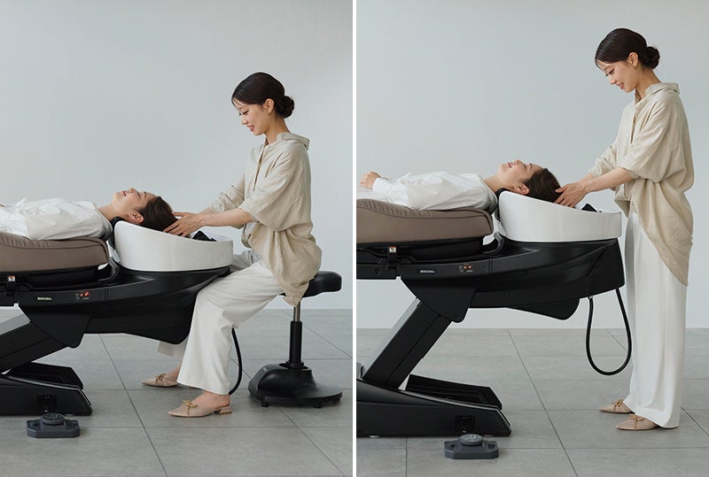 本格的なヘッドスパや長時間のリラクゼーションメニューの施術にはラクな座位ポジションを。シャンプーをする際は慣れた立位ポジションといったように、施術に合わせて選択することができます。