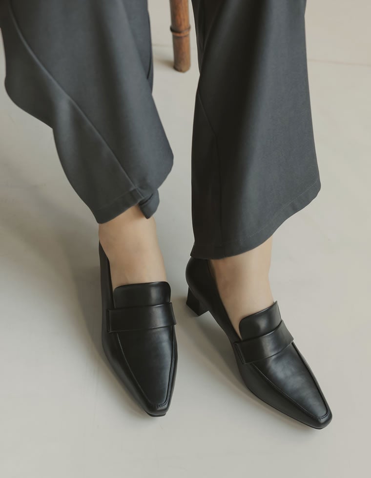 ポインテッドトゥとローヒールの組み合わせが新鮮なローファー。