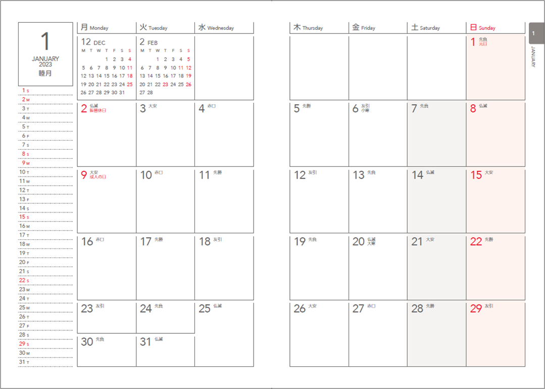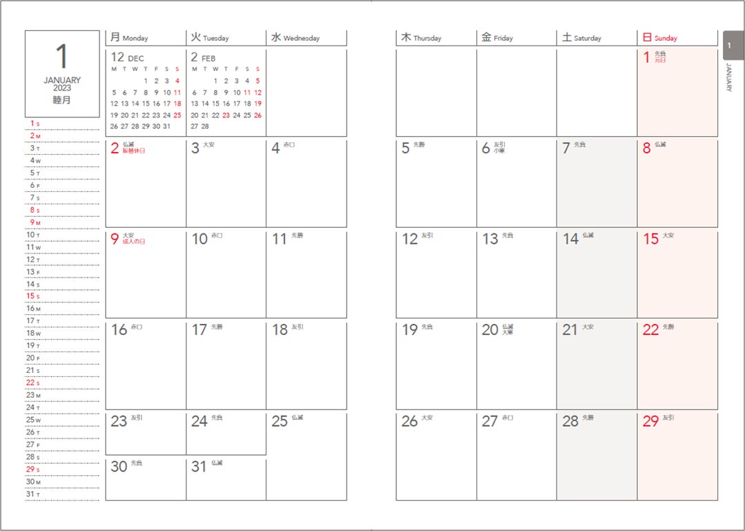 ・16か月タイプのため、1月始まり、4月はじまりのどちらにも対応しています。(2022年12 月~2024年3 月)