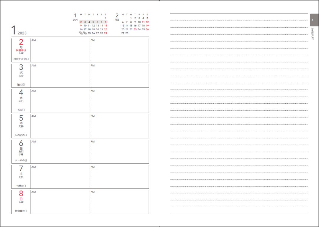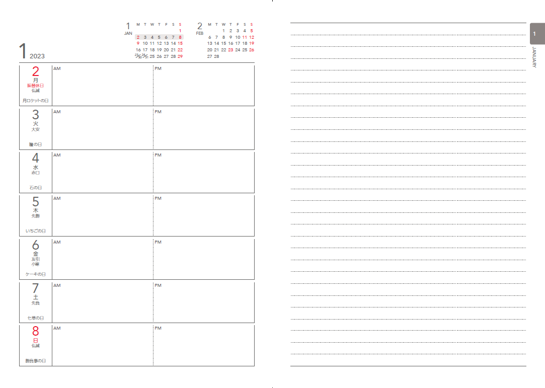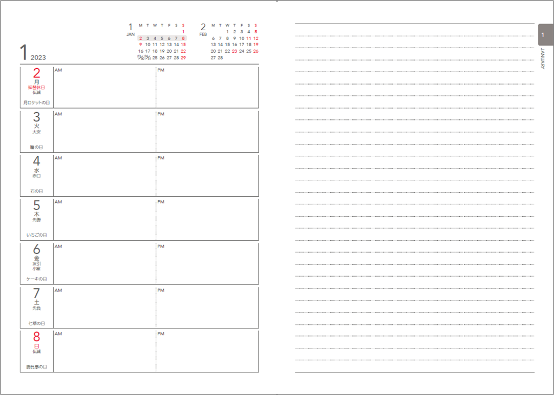 - シンプルで書き込みやすい!「1月始まり」「4月始まり」どちらにも対応!