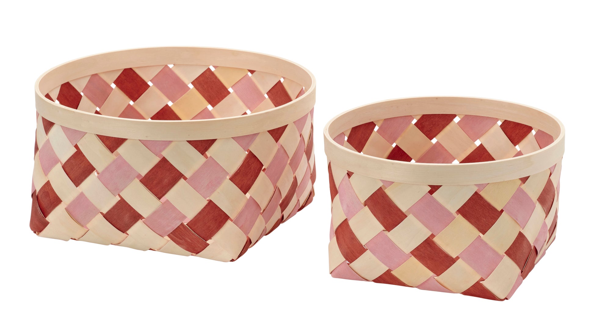 薄く削いだポプラ材で編んだハンドメイドのカラフルなバスケット。北欧の雰囲気を家の中にプラスします。天然素材は使い込むほどに独自の色や風合いが増すので、一つひとつのバスケットに微妙に異なる表情が生まれます。