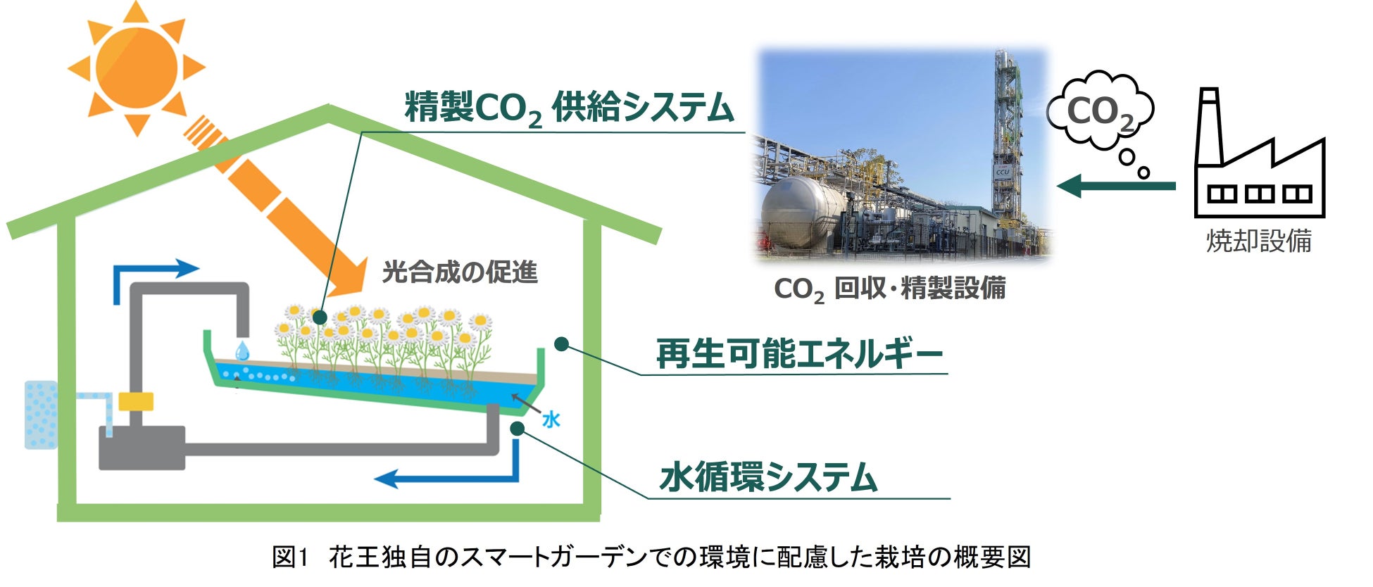 花王は、3つの循環による持続可能性をコンセプトに、新たに植物工場「スマートガーデン」 を構築し、ローマカミツレとローズマリーの栽培を行っています。