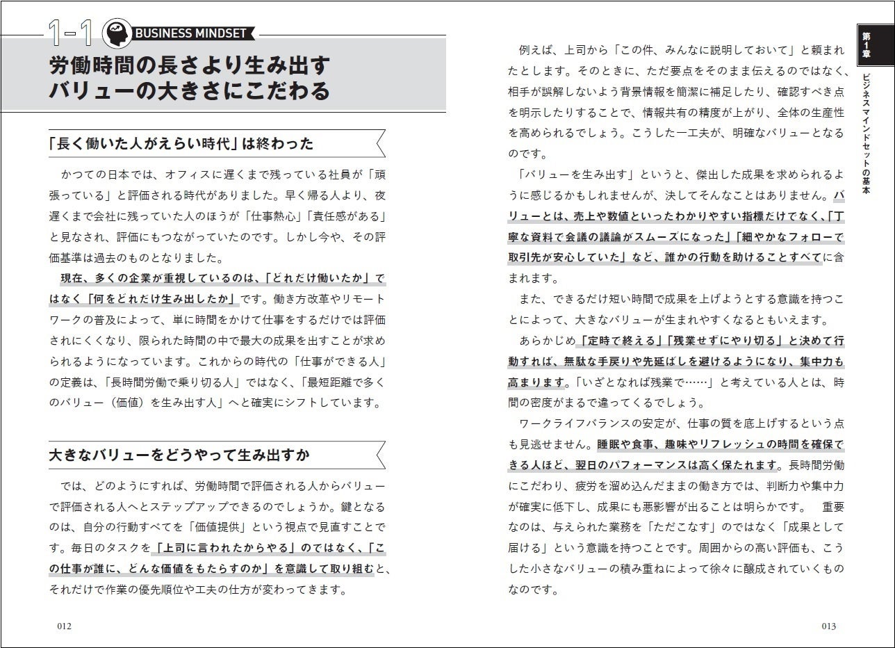 本書はそうした社会人1年目から活躍したい人へ向けた、ワンランク上の仕事をするための実践的なスキルを紹介しています。業界業種に関わらず、ベテランでさえ役立つ内容を吟味して集めました。