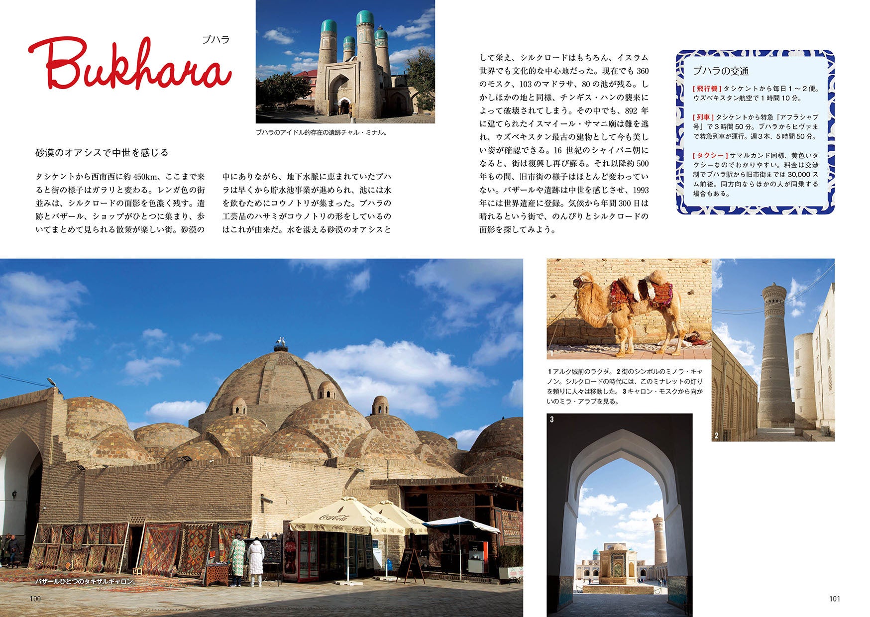 ウズベキスタンを代表する遺跡がある人気の観光地「サマルカンド」、砂漠のオアシス「ブハラ」、砂漠の要塞都市「ヒヴァ」、そして首都「タシケント」の情報が満載の1冊です。