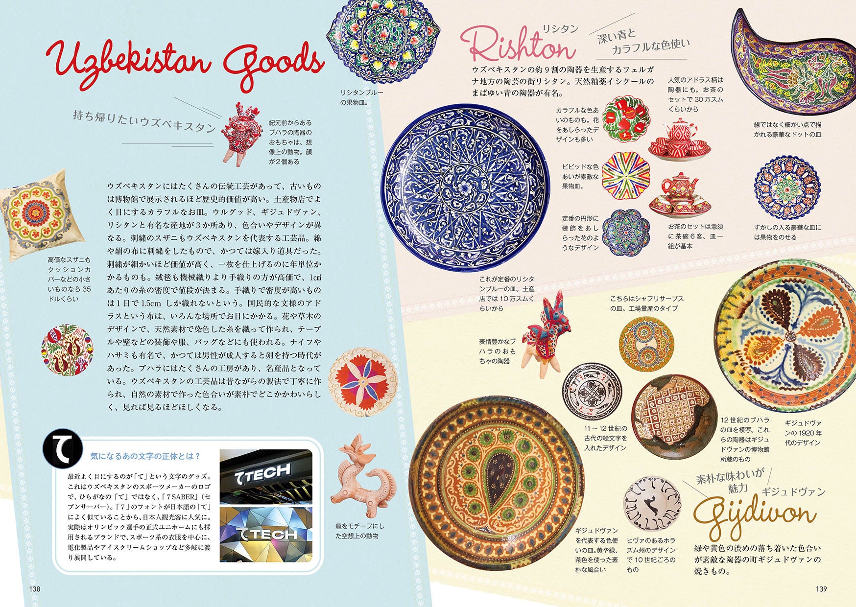 すべての都市で、最新観光スポット、遺跡、グルメ、ホテル情報を網羅。また、ウズベキスタンに行ったら必ず食べておきたいグルメやお土産などのカタログも入り、はじめてウズベキスタンを旅する人にとって、使いやすい仕様になっています。