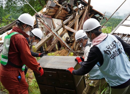 アル・プラザ鹿島の復旧オープンを前に被災地のために出来ることはないかと考え、中能登町のボランティアに参加しました。7月10日、北陸エリアの社員20名が、公費解体の対象となった家屋の家財や災害ごみの運び出しを行いました。地震の被害を風化させないため、そして地域の復興のために今後も継続して活動を行ってまいります。