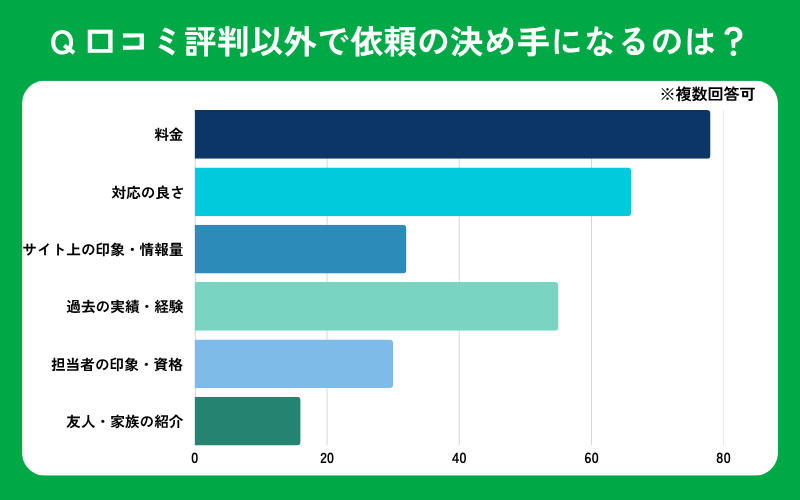 口コミ評判以外でエアコンクリーニングの依頼の決め手になる要素は何ですか?(複数回答可能)
