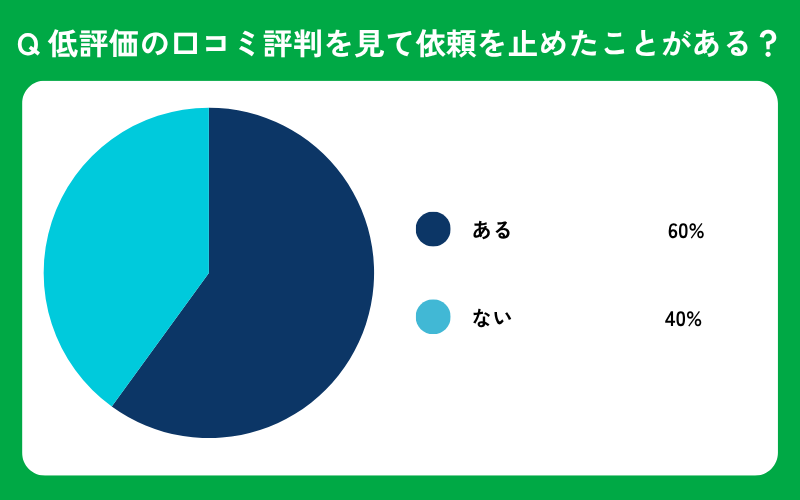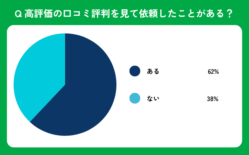 ・高評価や低評価の口コミ評判は6割のユーザーのサービス依頼に影響を与える。
