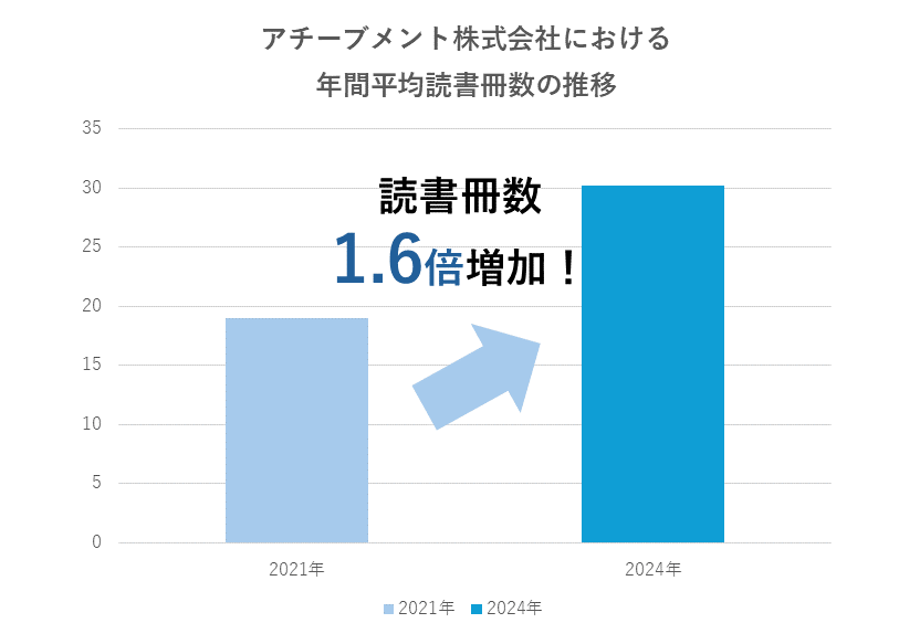 これまでの集計データを分析すると、2021年における1人あたりの年間読書冊数は18.96冊でしたが、2024年には30.17冊に増加しました。この数字は、単なる個々の読書量の増加にとどまらず、社員全体の知識欲の向上と、学びを通じた自己成長への意識の高まりを示しています。また、社員が読書や自己学習に取り組む機会を増やすだけでなく、成果を共有し合うことで、知識の定着と実務への応用を促進しています。またこの取り組みは書籍から学んだ内容を具体的な業務改善に繋げることを目的としています。単に読書冊数を競うものではなく、社員が学び続ける姿勢、日々の業務をより良くできないかという向上心を育むことを目指しています。