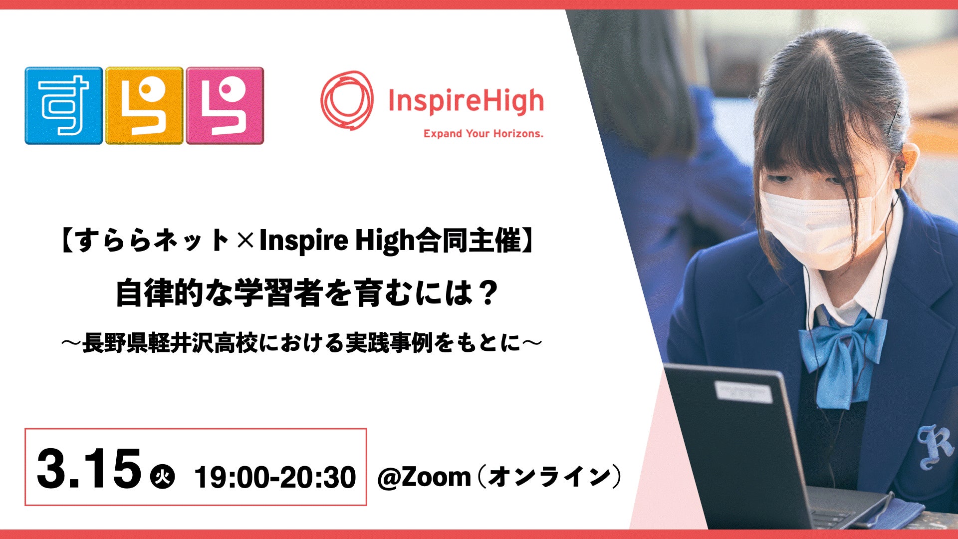3月15日開催 すららネット×Inspire High合同主催セミナー「自律的な学習者を育むには?」〜 長野県軽井沢高校における実践事例をもとに 〜