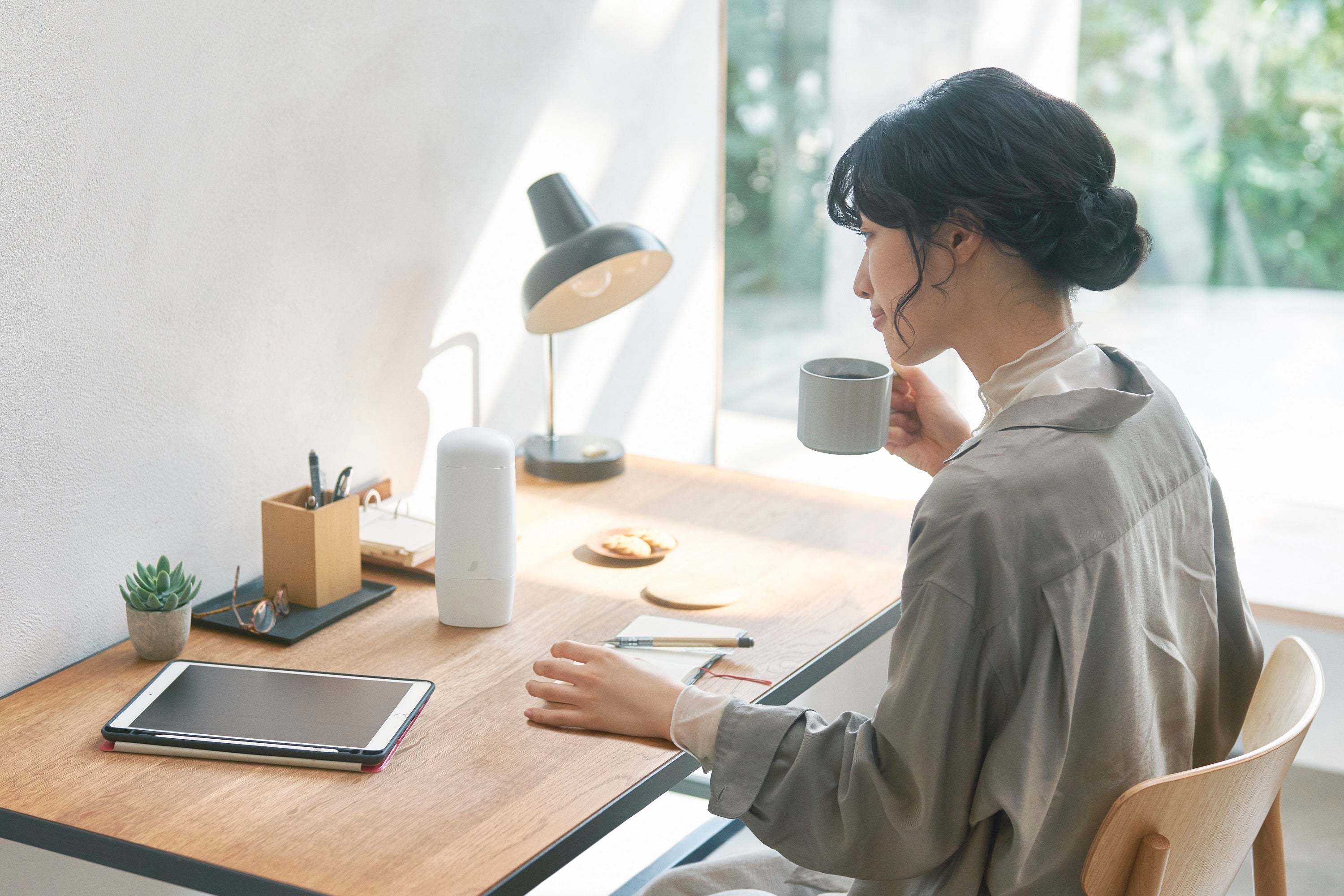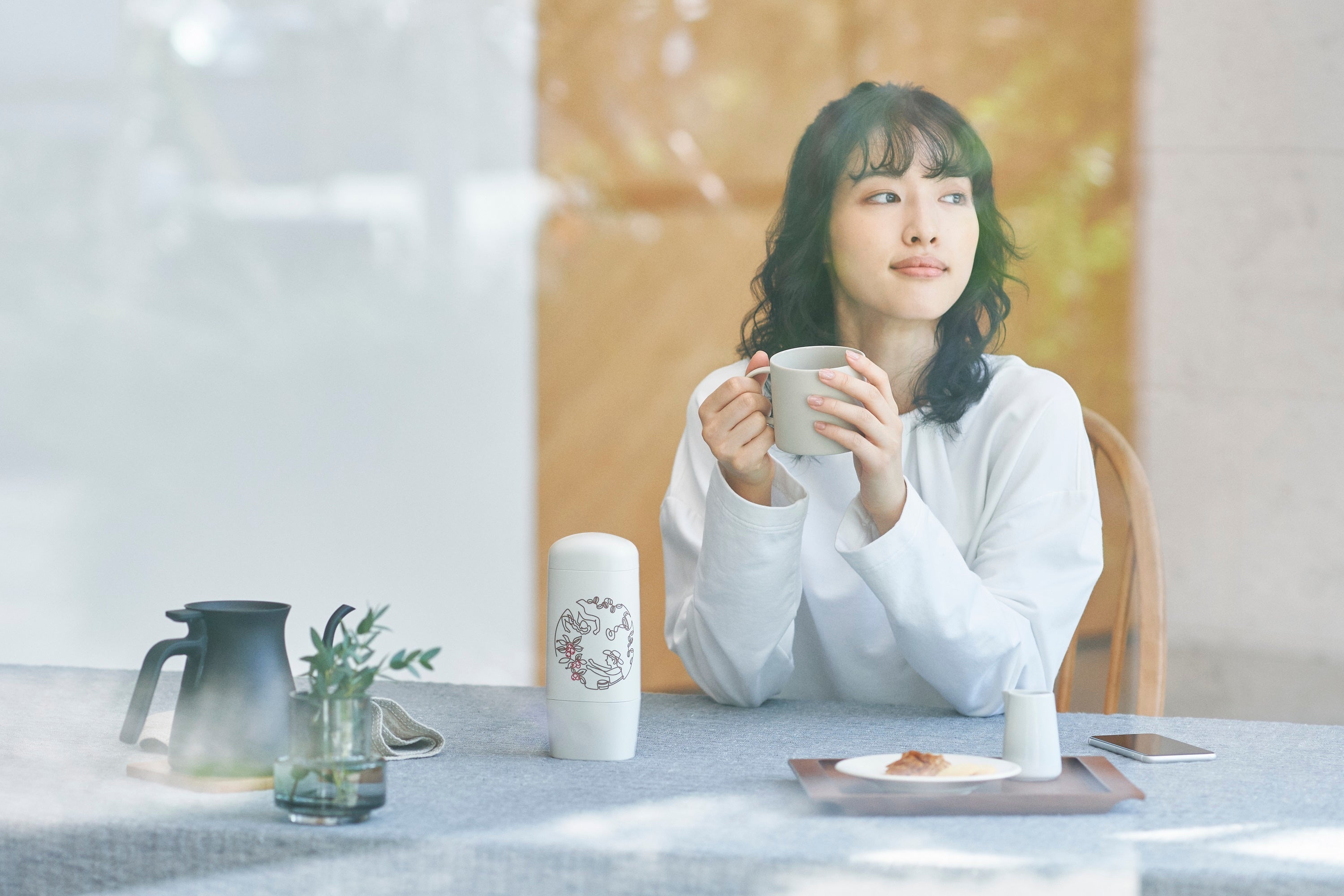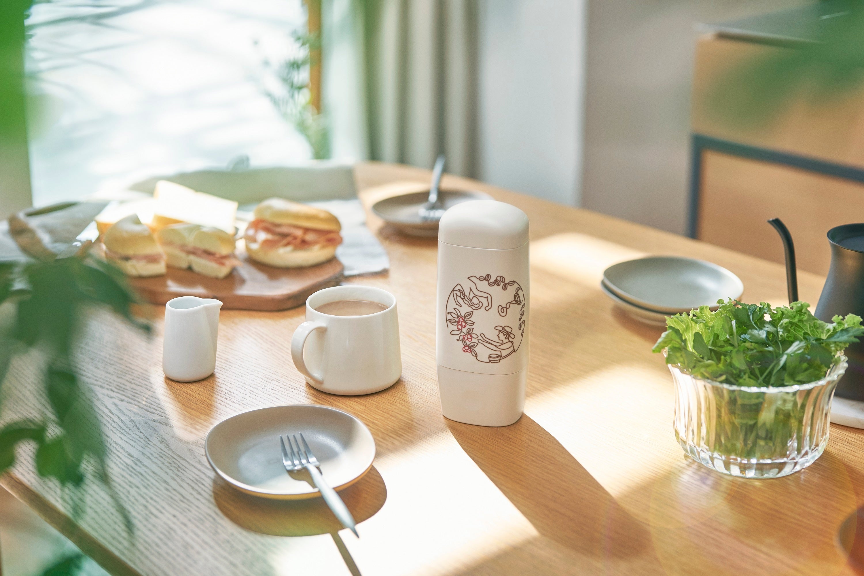 慌ただしい毎日では、つい呼吸することすら忘れてしまいます。 コーヒーの深い香りを思い切り吸って吐く。私にとって、大好きなコーヒーは一日の疲れをリセットしてくれる大切な存在です。 絵を描くこともやっぱり好きで、毎日ほんの10分でも好きなものに向かう時間があれば、自分自身に目を向けられて明日からまた頑張れる気がするんです。 今回のデザインは、モノクロの家電が多いキッチンに馴染むよう一筆書きで、ふと目に入った瞬間に前向きな気持ちになれるようなものにしたいという思いで制作しました。 そして、毎日の10分を充実した