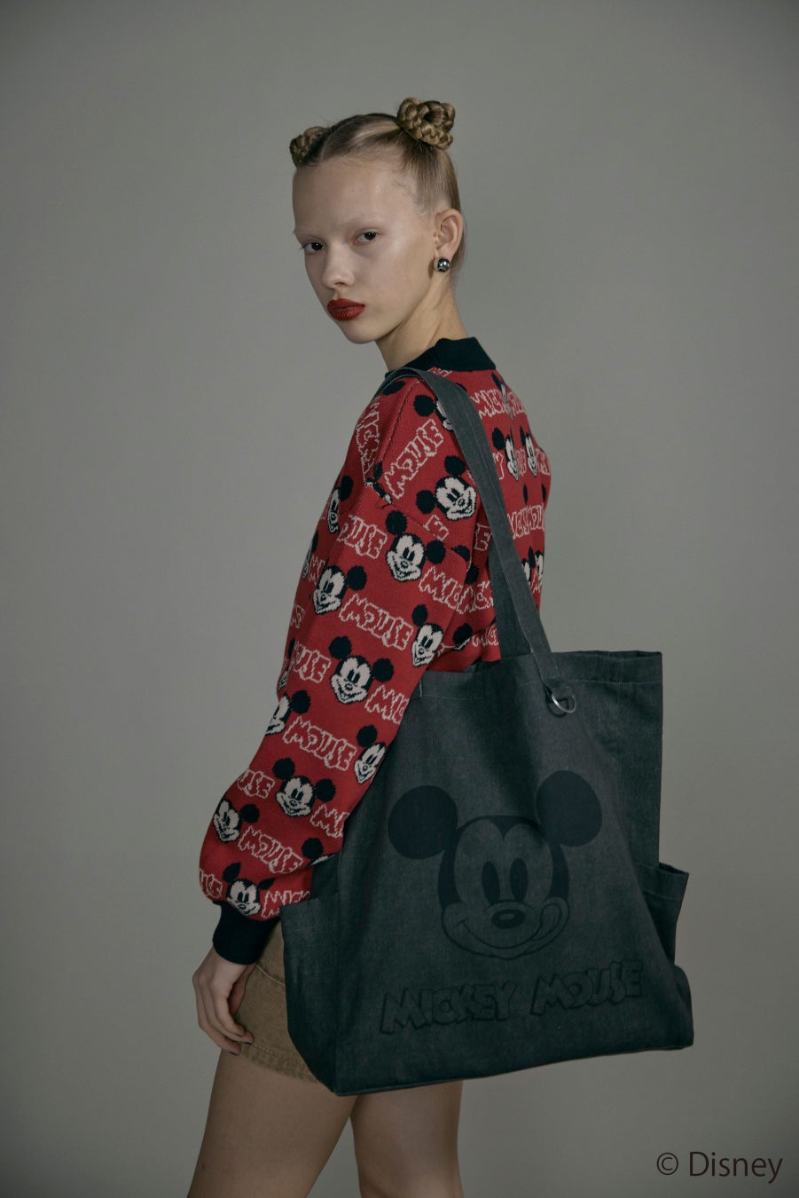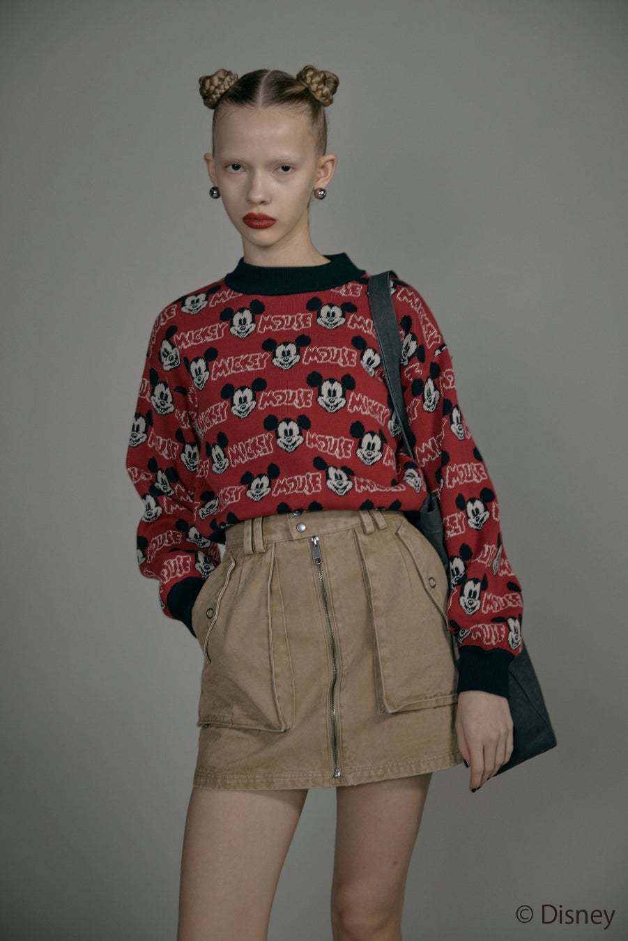 「ミッキーマウス」のロゴとお顔を総柄で表現した、存在感抜群のニットトップス。