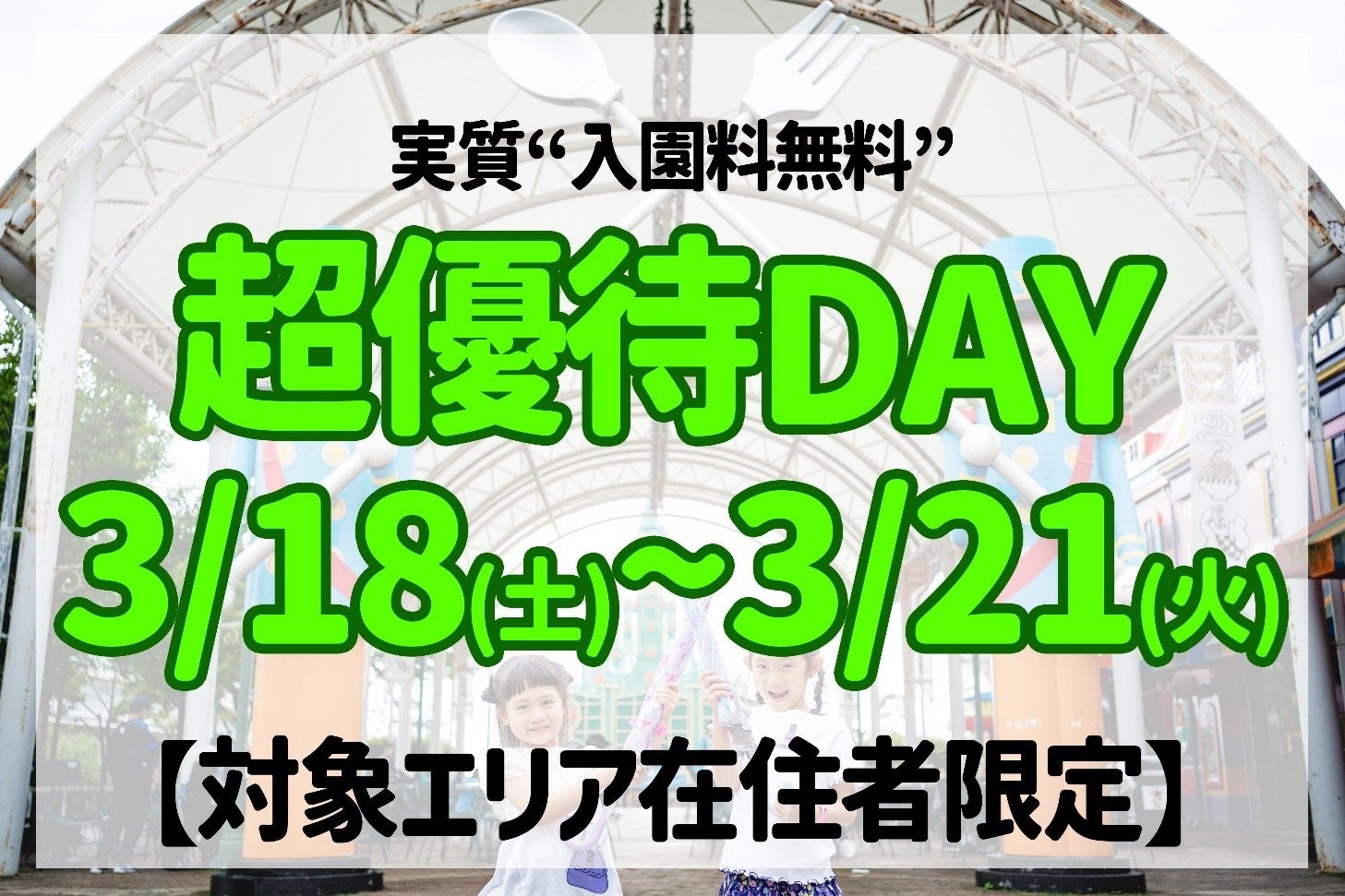 藤和那須リゾート株式会社(栃木県那須町/代表取締役社長:岩本 大二郎)が運営する“那須ハイランドパーク”では、3月18日(土)から3月21日(火・祝)までの期間中、おでかけ需要が高まりつつある今、ご家族やお友達と一緒に思いっきり楽しみ、たくさん笑って過ごしていただきたいという想いから、栃木県県北エリア(大田原市・那須塩原市・那須町・那珂川町・那須烏山市・矢板市・塩谷町・高根沢町・さくら市)&福島県白河市・西郷村にお住いの方を対象に、入園料相当分の割引がされた超お得なファンタジーパスセットを提供する「超優待DAY」を開催いたします!!!春休みはぜひ、那須ハイランドパークで素敵な1日をお過ごしください。