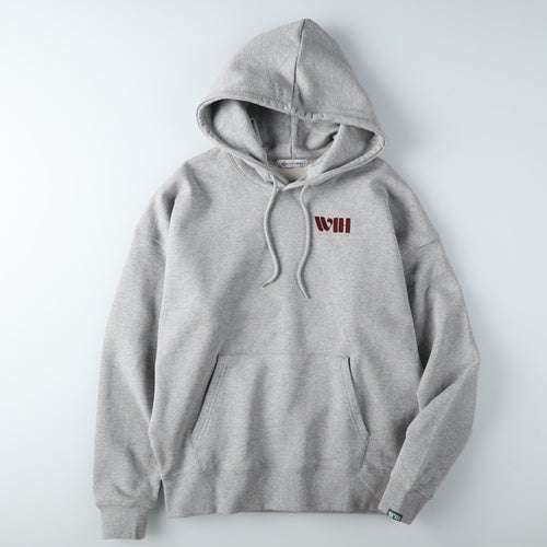 胸元にブランド「WIH」の刺繍が入ったシンプルなアイテム。身幅とフードを大きくした、トレンド感のあるデザインです。袖の内側には「WIH」のロゴと、りんごが隠れている所がポイント。