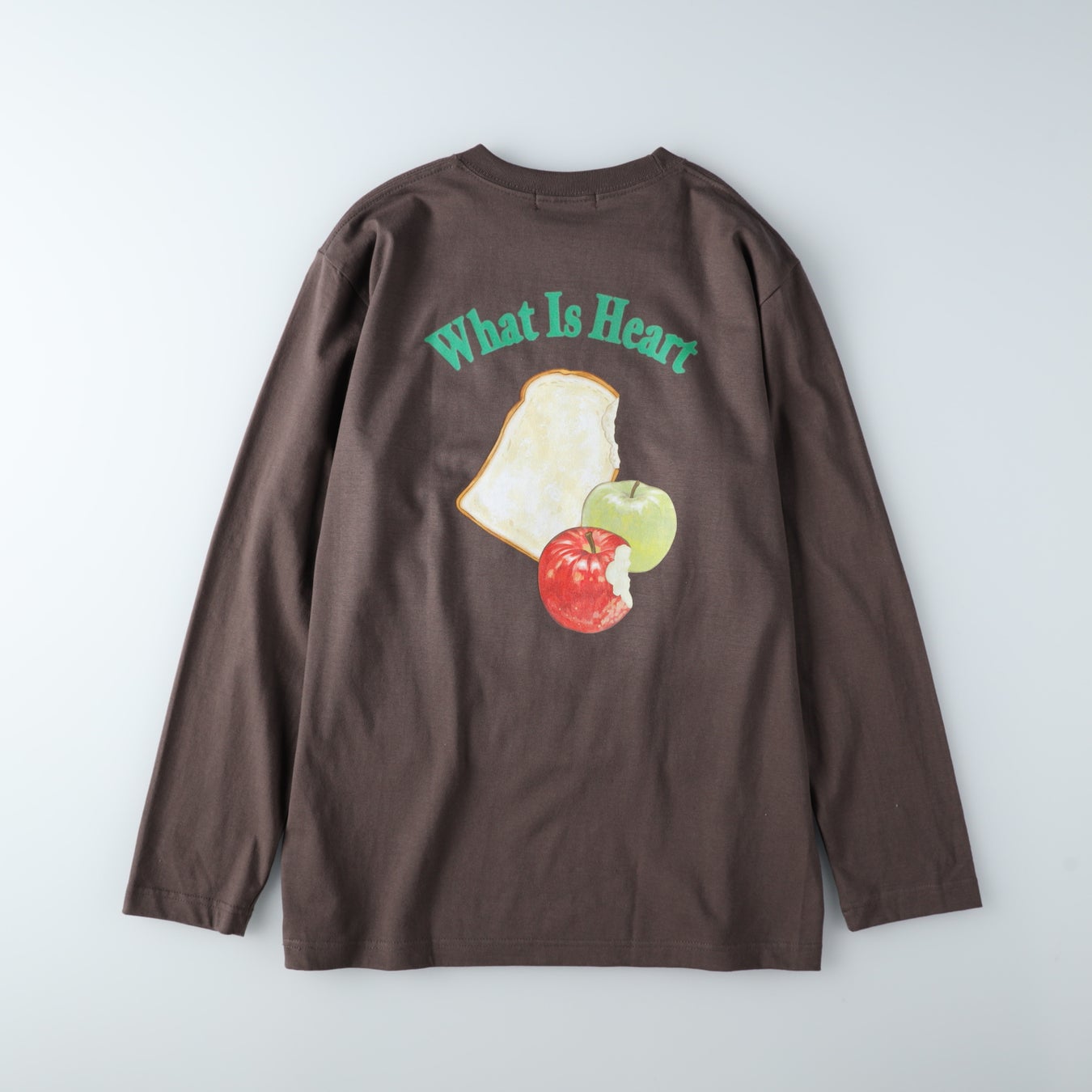 りんごとパンのイラストをプリントしたロンTで、プリントと無地の二枚組となっています。※カラーにより、プリントと無地の組み合わせが異なります。