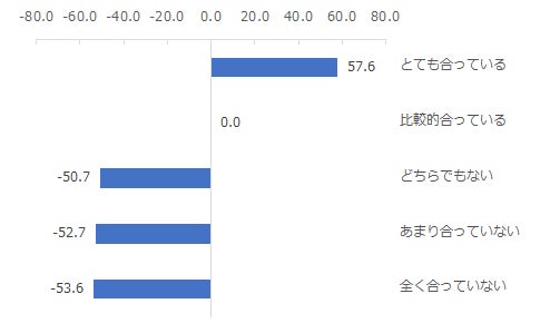 また、該当の旅行会社から提供される旅行先に関する情報や、旅行プランの提案などが、自分のニーズや嗜好に合ったものになっているか調査したところ、「とても合っている」または「比較的合っている」と回答した利用者は60.3%となりました。また、これらの合致度別にNPSも分析したところ、「とても合っている」と回答した利用者のNPSは57.6ポイント、また「比較的合っている」と回答した利用者も他回答者に比較して高くなりました。利用者のニーズや嗜好にあった情報を旅行会社から発信することがロイヤルティ向上につながることが示唆される結果となりました。