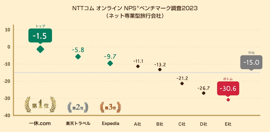 ネット専業型旅行会社を対象としたNPS®ベンチマーク調査2023の結果を発表。NPSおすすめランキング1位は一休.com