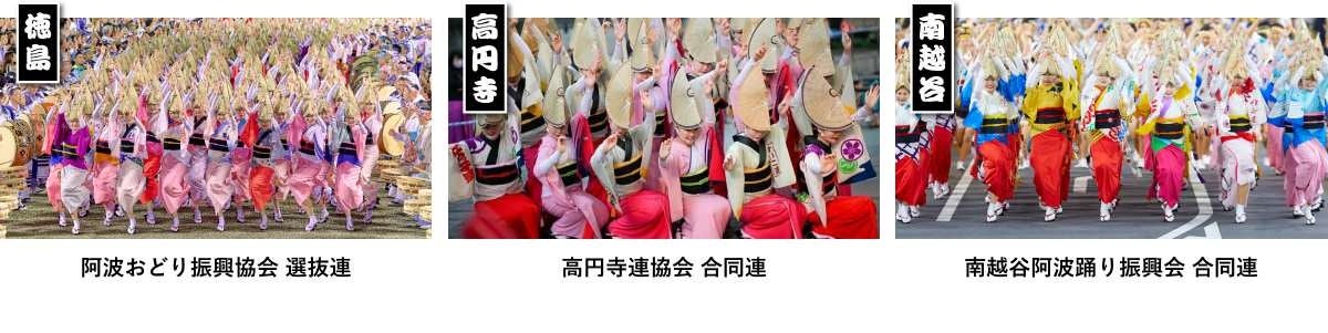 阿波おどりの本場徳島から「阿波おどり振興協会 選抜連」、また同じく日本三大阿波おどりと言われる「高円寺連協会 合同連」「南越谷阿波踊り振興会 合同連」から、合計約100名が参加し、渋谷サクラステージの各所で演舞を披露します。BLOOM GATEの演舞場では、各回において、観客も一緒に参加できる阿波おどり教室を実施します。