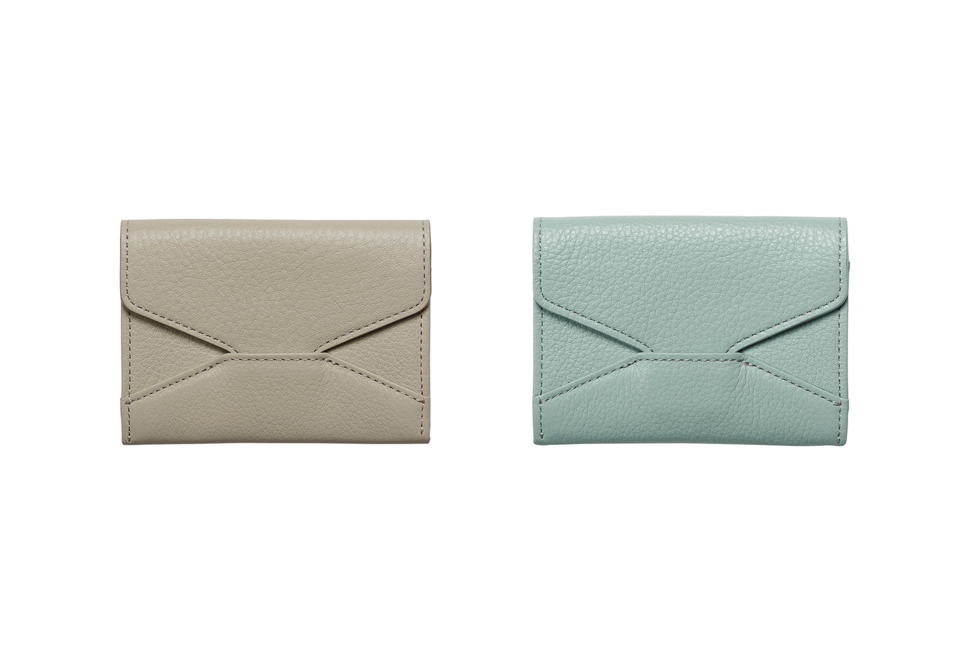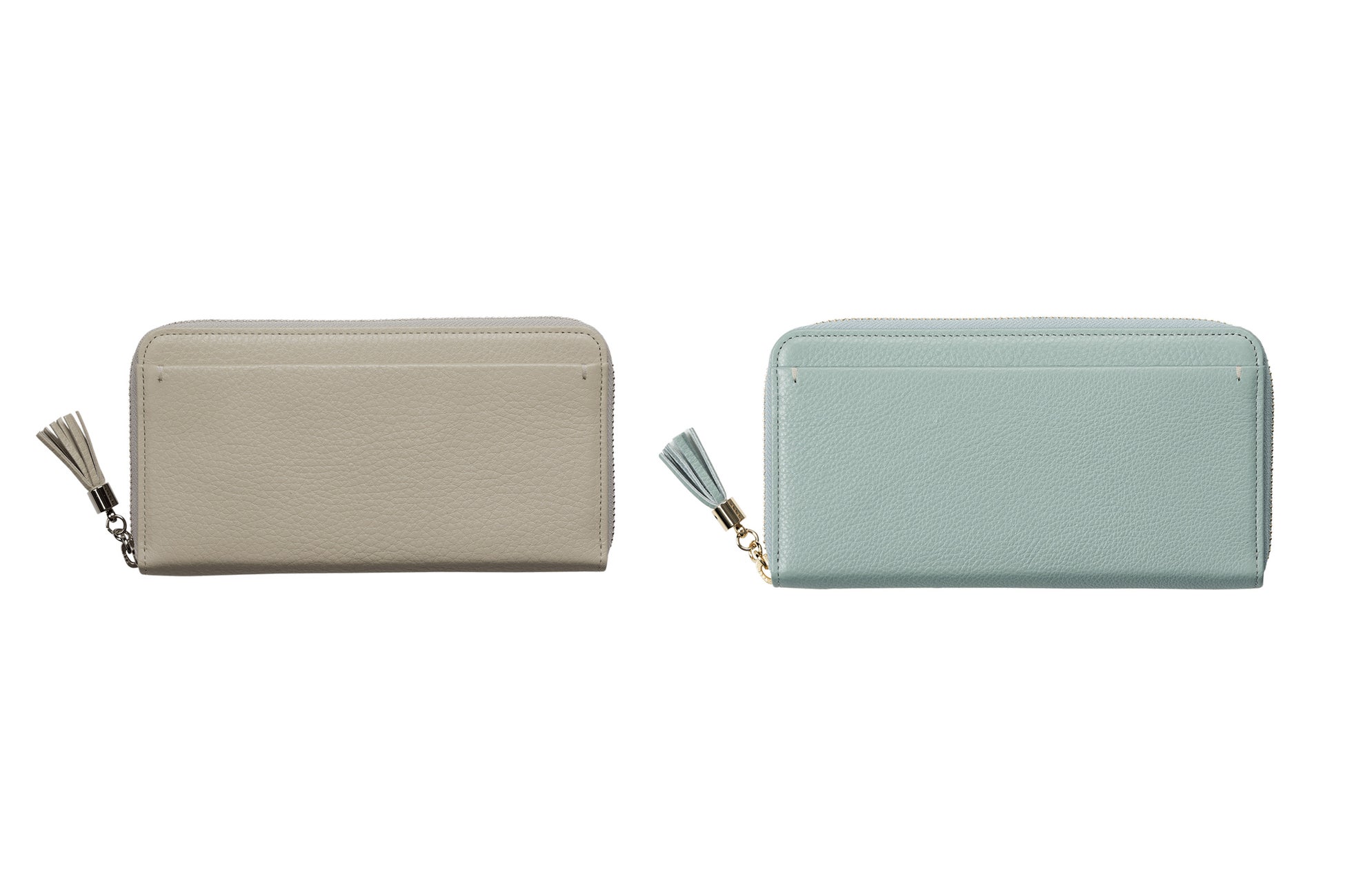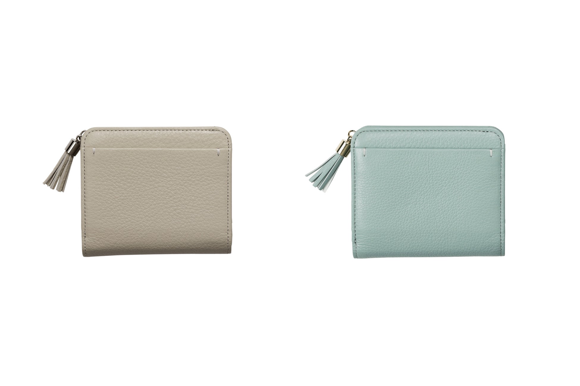 「青磁」を意味する名前の数量限定色「セラドン」。黄味を含んだ軽やかで浅い青緑色が、持つ人に爽やかな彩りを添えます。内装色には少しグリーンがかった「グレー」をあしらいました。小物の付属革には明るい「シルバーグレー」色を合わせ、革色とのコントラストが楽しい色合いに。ステッチは外装を引き立てる「ライトグレー」色を使用。金具色には「ゴールド」を取り合わせ、春先らしいあたたかみを添えました。