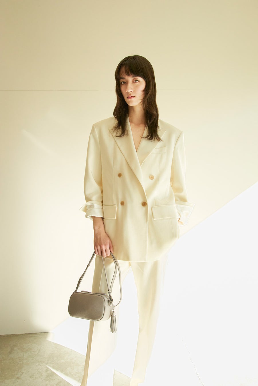 普段はショルダーバッグとして、フォーマルシーンではショルダーを外してハンドバッグに。すっきりとしたシルエットで、シームレスに持てるデザインです。