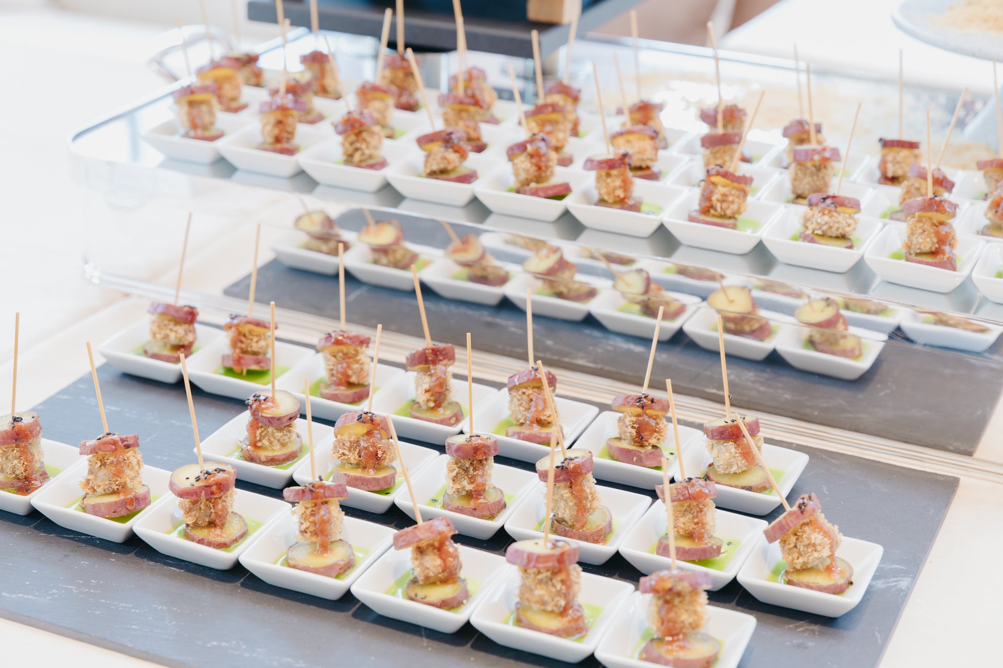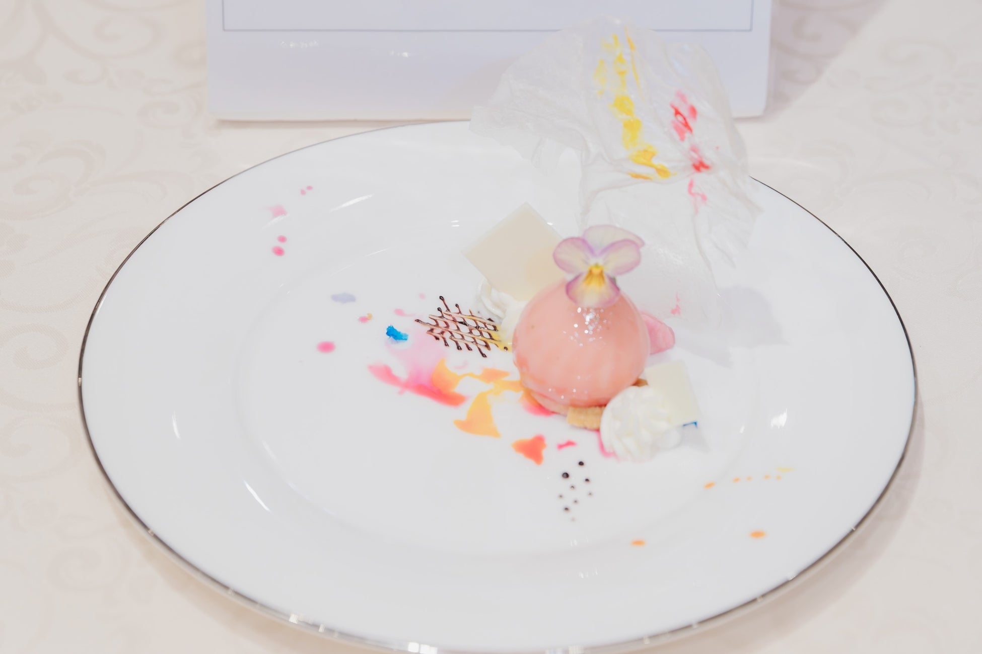 アニヴェルセルでは、お客様に選ばれ続ける式場であるために年に一度、料理・デザートコンクールを開催し、全店のキュイジニエ・パティシエが技術力と表現力を競い合うことでレベルアップを図っています。今年の料理コンクールは【冷製オードブル】【温製(肉・魚)】の2部門10名、デザートコンクールは【皿盛りデザート】【デザイン】の2部門10名が決勝に進出。お客様の視点をより重視するため、専門学校の先生や農園の方、同業他社など社外からも審査員をお招きし、料理のテーマや特徴についてプレゼン後、味・ビジュアル等の項目を評価し、各部門の優勝者を決定しました。