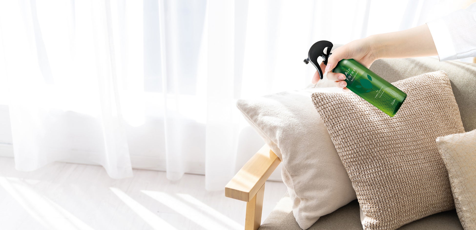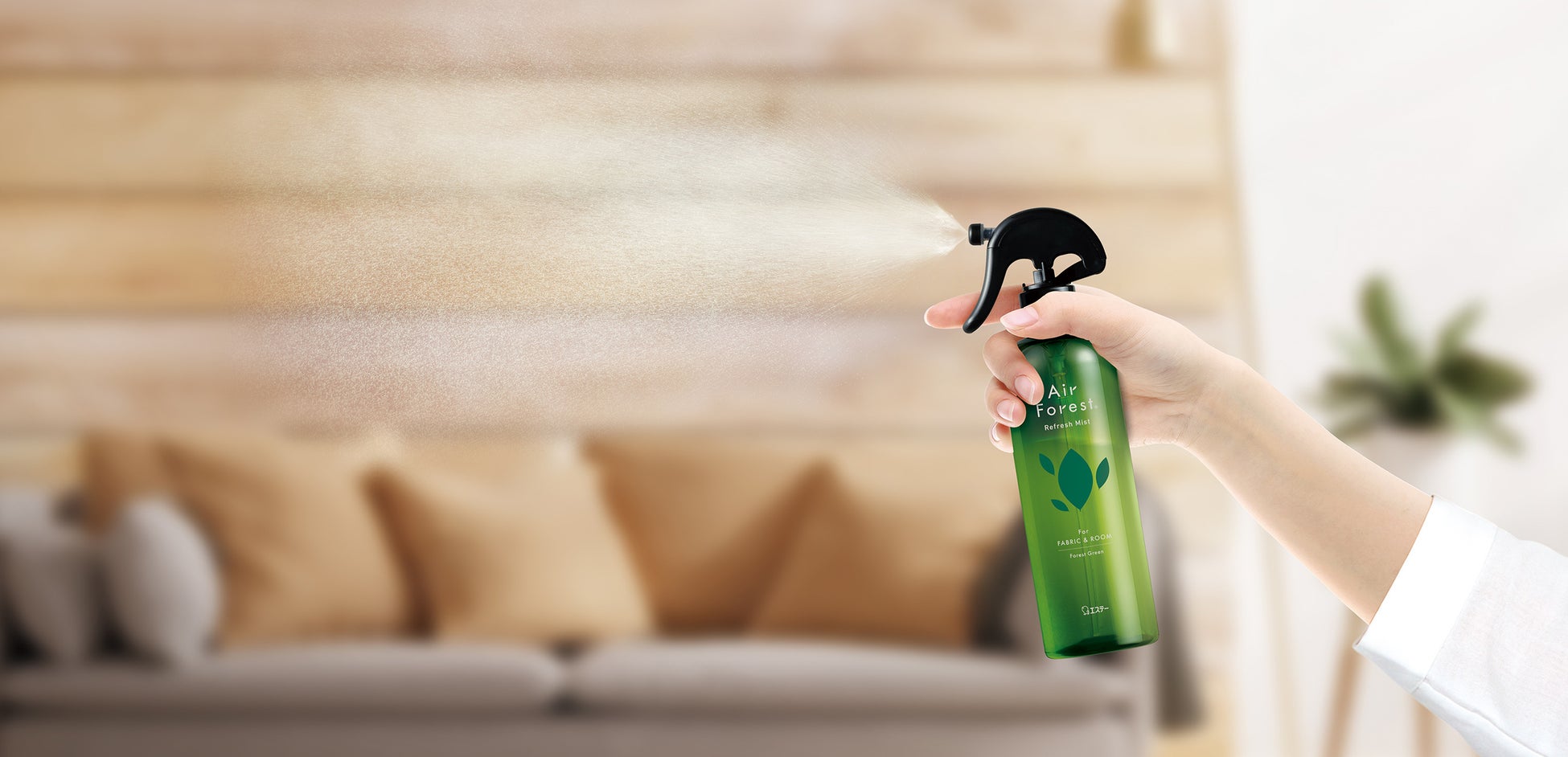 「Air Forest Refresh Mist」は、機能性樹木抽出成分(樹木水)を配合し、99%が天然由来成分でできています。ナチュラルな仕様ながら、エステーが培ってきた消臭技術によって、衣類やソファ、カーテンなどのファブリックから空間まで、気になるニオイをしっかり消臭します。タバコ臭や汗・体臭などの生活臭への優れた消臭効果を発揮し、布製品に対しては、99%の除菌・ウイルス除去効果もあります※。