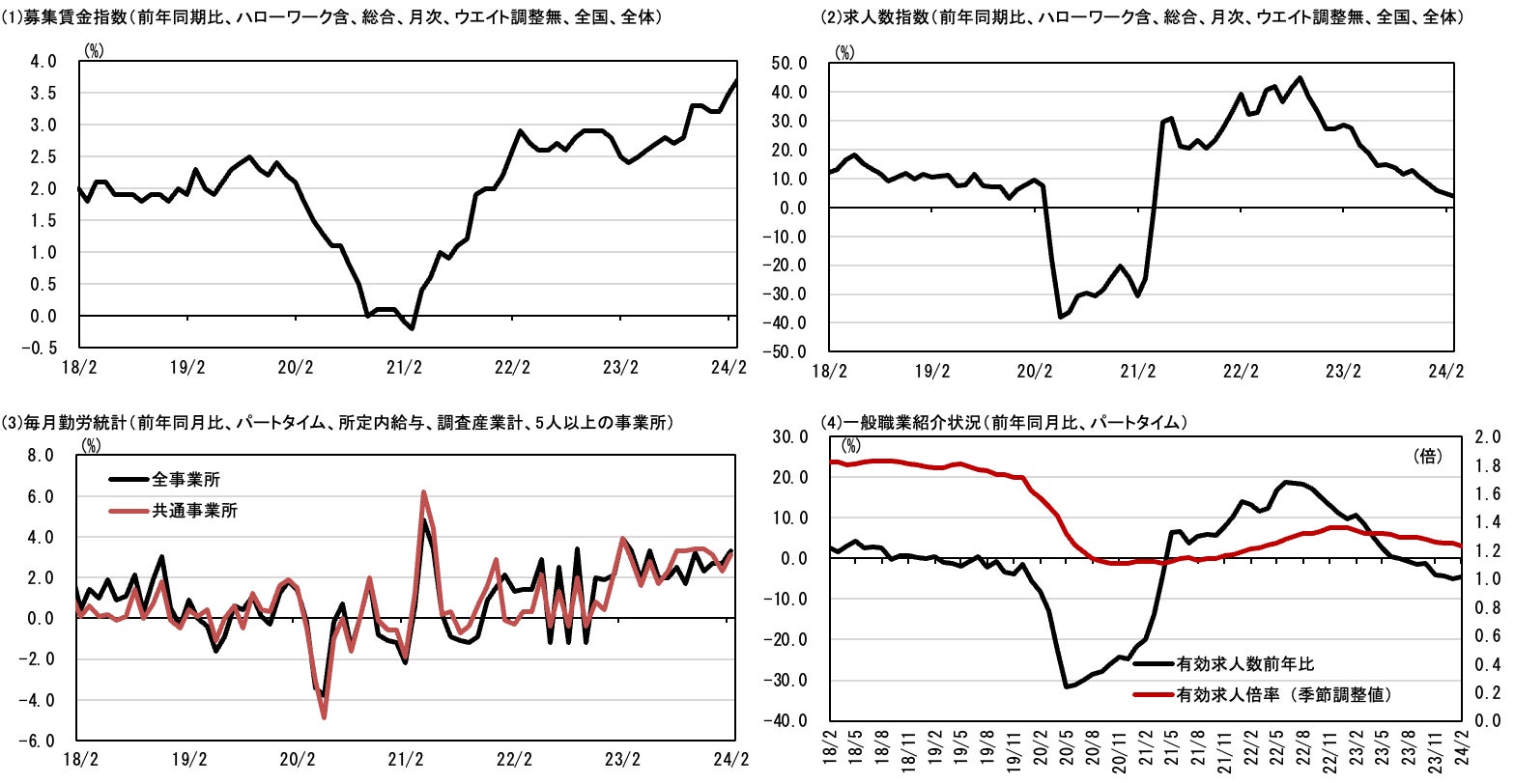 求人数指数の前年同期比は+10.5%と12月にプラスに転じて以降、ペースは鈍化しているものの上昇を続けている。