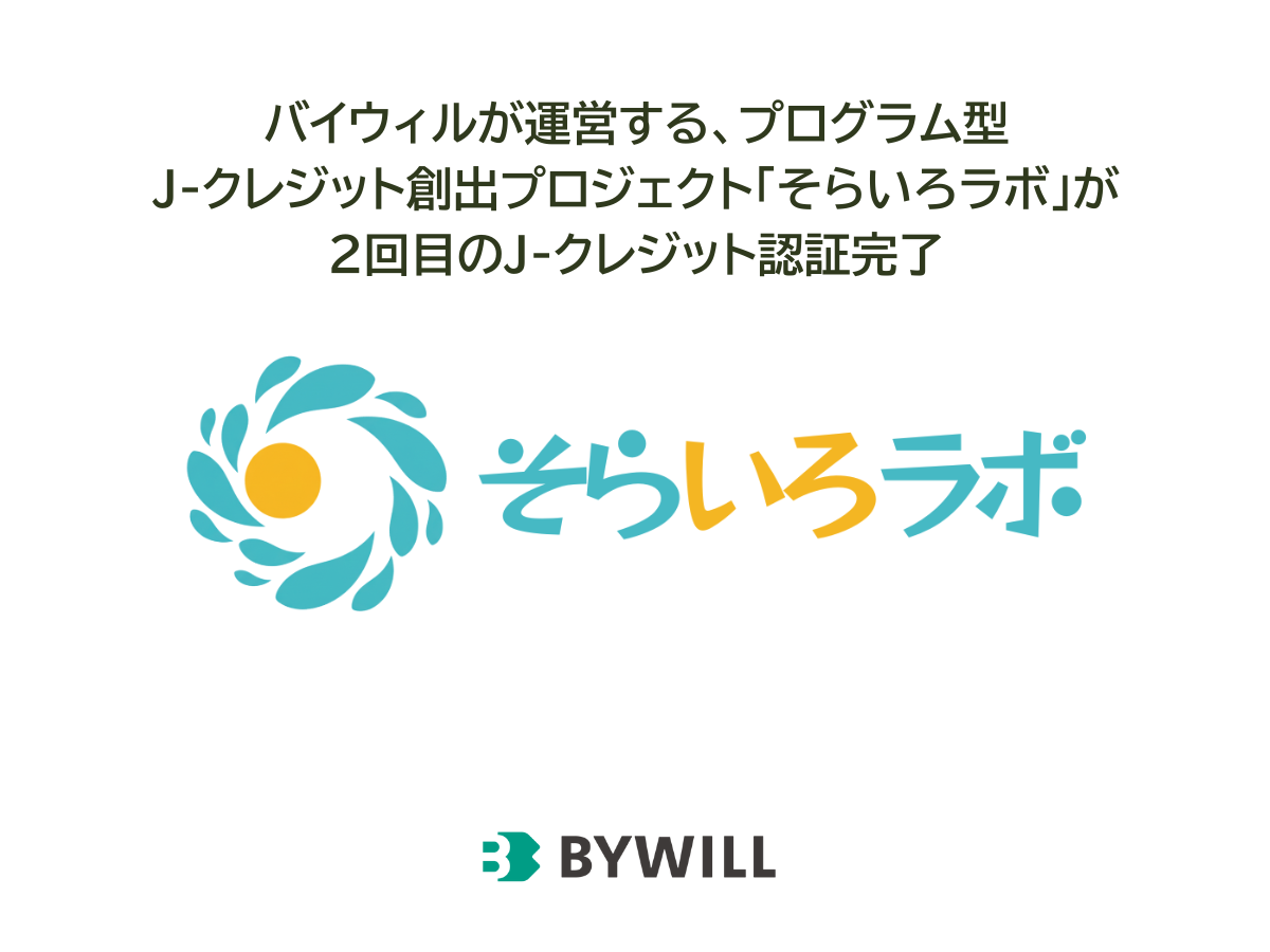 バイウィルが運営する太陽光発電由来のJ-クレジット創出プロジェクト 「そらいろラボ」、前回比130%増のクレジットが認証完了