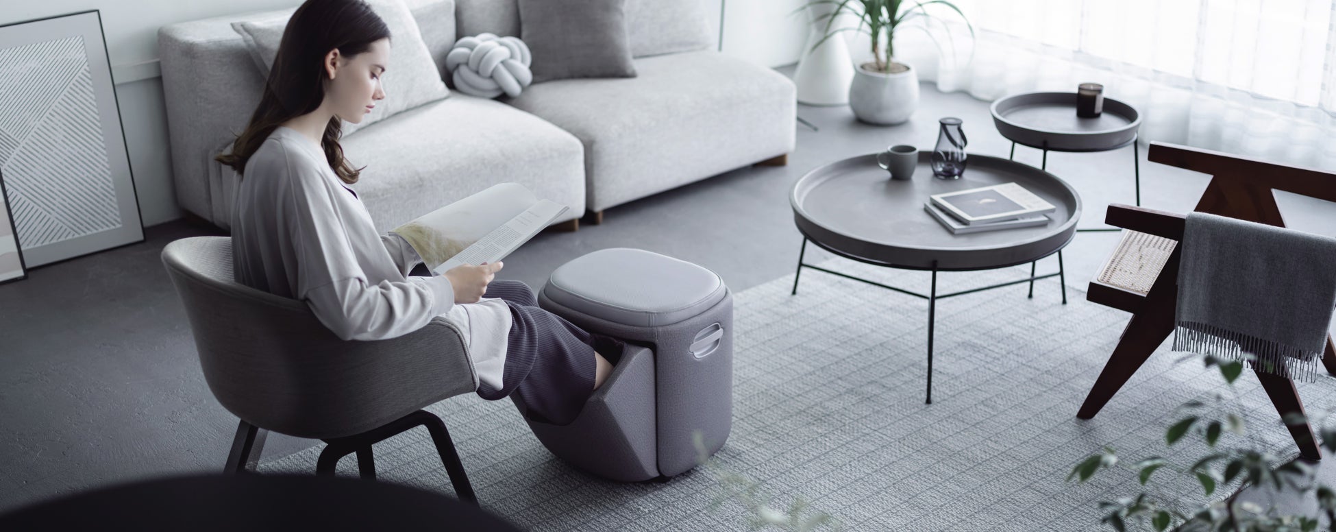また、【3Dフットマッサージャー スツール】は“マッサージとして使用しない時間”にも着目。シンプルなフォルムと落ち着きあるカラーで、どんな空間にもマッチするデザインで、マッサージャーとして使わない時はスツールやオットマンとしても使用できます。さらに、操作方法は本体パネルのボタン操作というシンプル設計。コースは、<ほぐしもみコース・しぼりもみコース・あしうらコース>の3つをご用意。エアーバッグの強さも3段階で調整可能なので、脚の疲れの度合や、足の部位に合わせてお好みのマッサージコースからお選びいただけます。