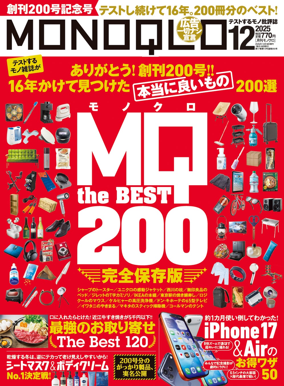 創刊200号を記念して16年間で見つけた「本当に良いもの200選」を発表! iPhone17のお得ワザも大公開!!【MONOQLO12月号】