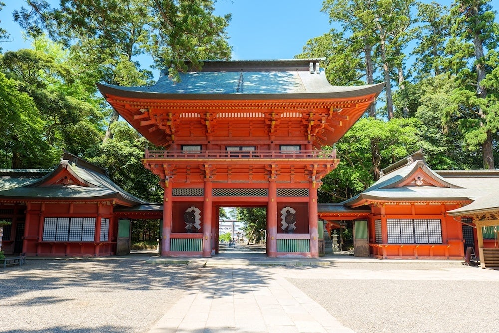 茨城県鹿嶋市の「鹿島神宮」は、神武天皇元年(紀元前660年頃)の創祀といわれ、国宝や国の重要文化財を数多く有する格式高いお宮です。全国にある鹿島神社の総本宮であり、千葉県香取市の香取神宮、茨城県神栖市の息栖神社とともに東国三社の一社です。和装をお召しになっての神前式の後は、日本のゆかしい美しさを感じる花嫁姿をパーティでもお披露目いただけます。(写真提供/鹿島神宮)