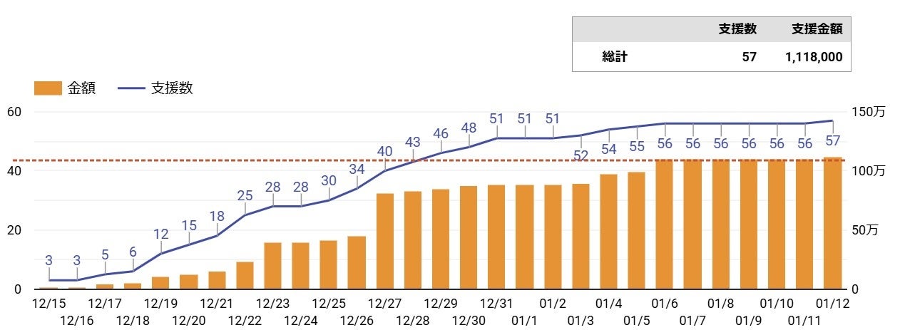 2024年12月15日から2025年1月14日までクラウドファンディングプロジェクトを実施しました。51件と多くのご支援をいただき、目標金額110万円を達成することができました。